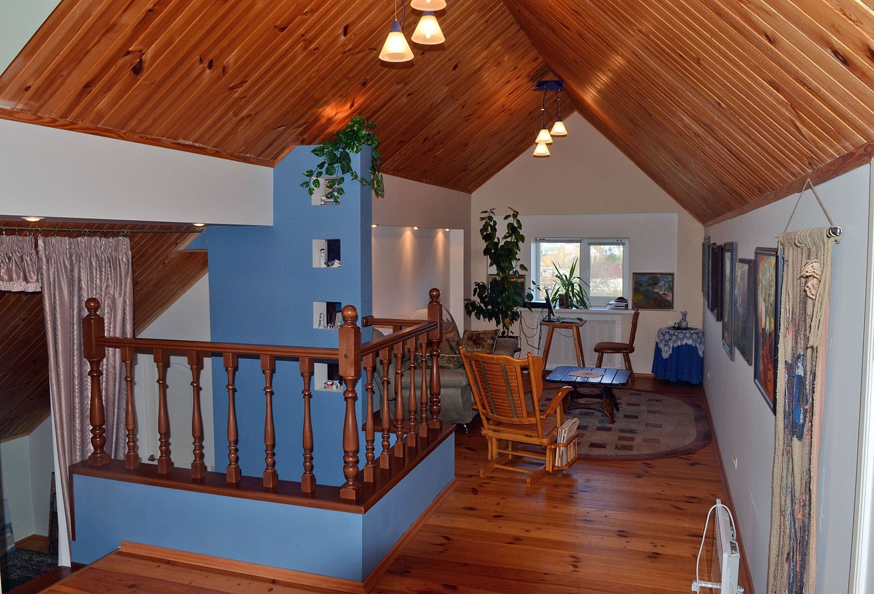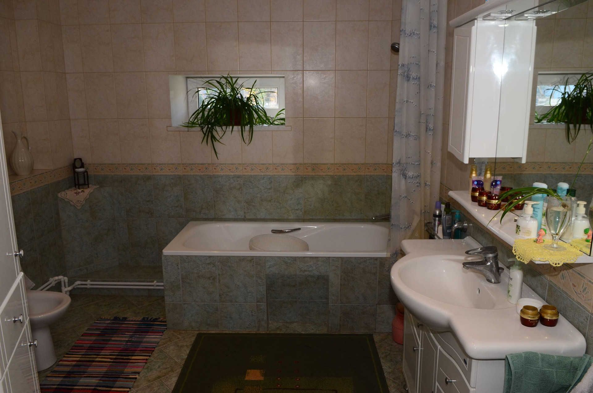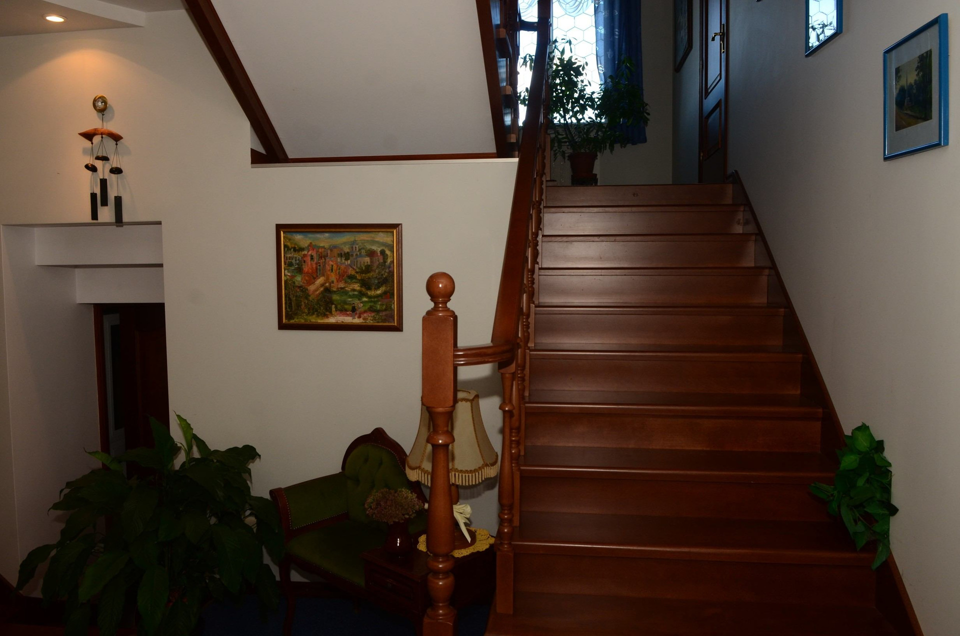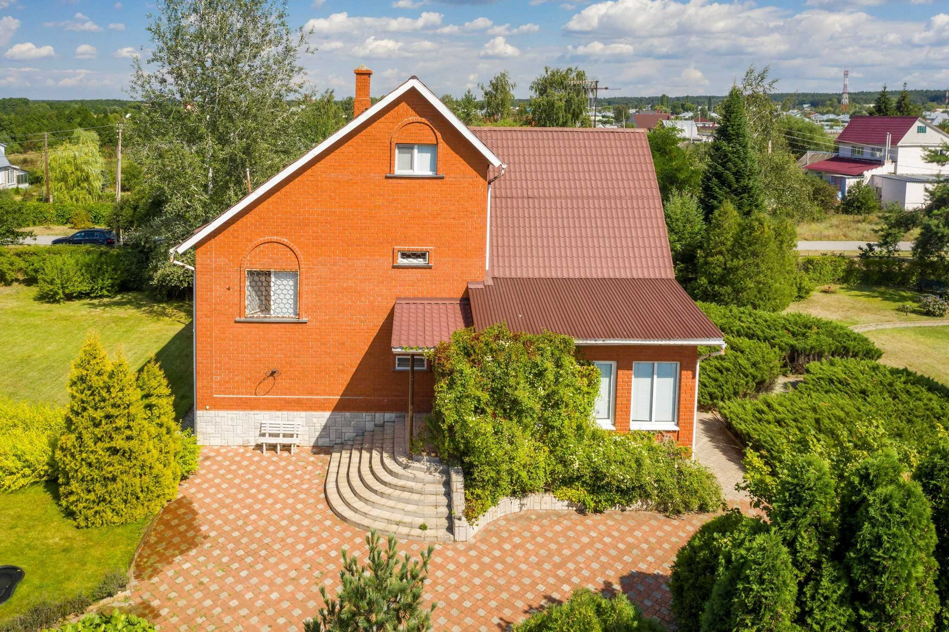 Трёхэтажный кирпичный дом площадью 430 м² построен из экологичных и надежных материалов. В доме расположены два санузла, просторная кухня, гостиная с камином, сауна, бильярдная, пять просторных светлых спален. Также имеются комнаты для хранения вещей, домашняя библиотека и т.д.