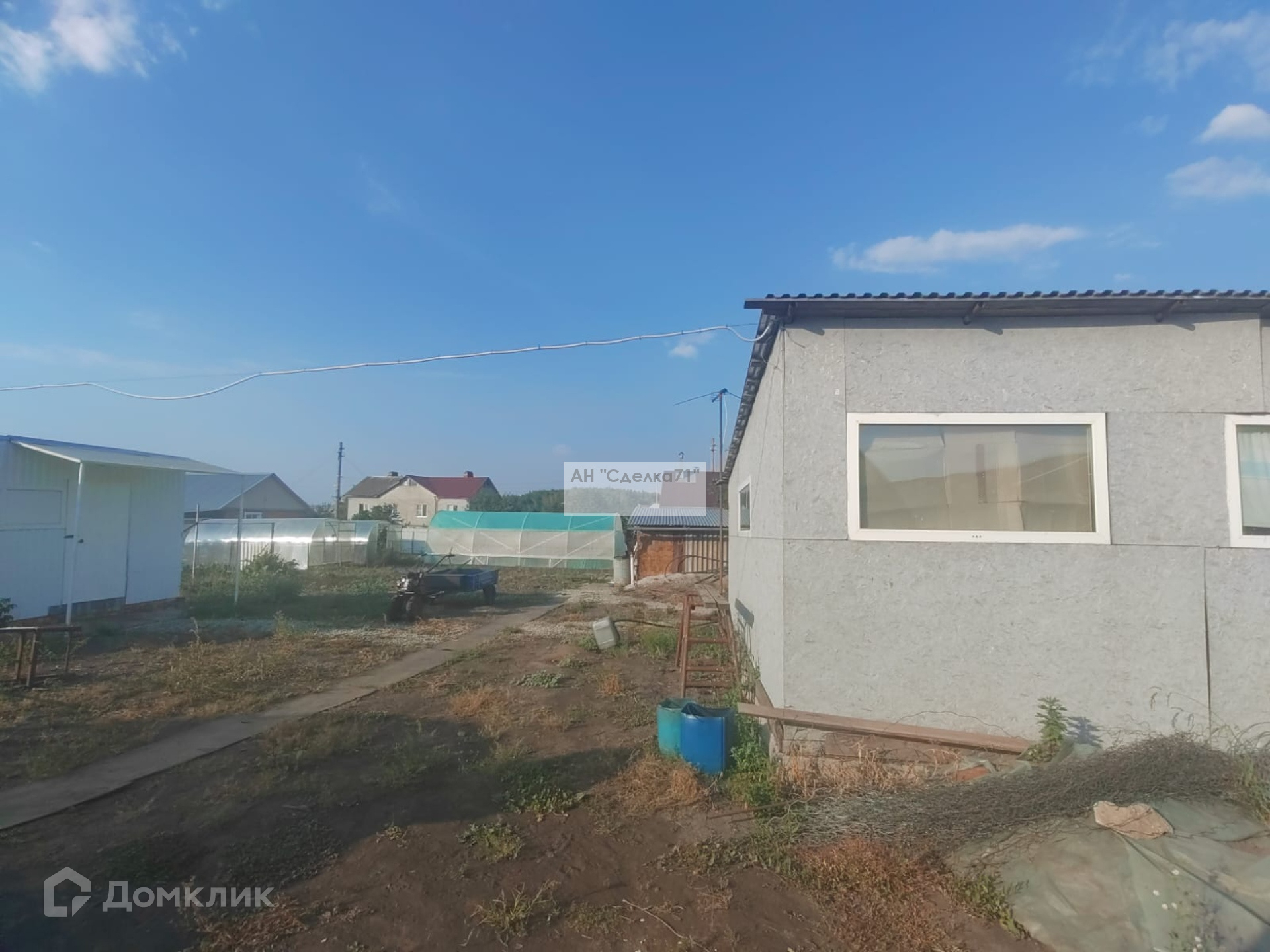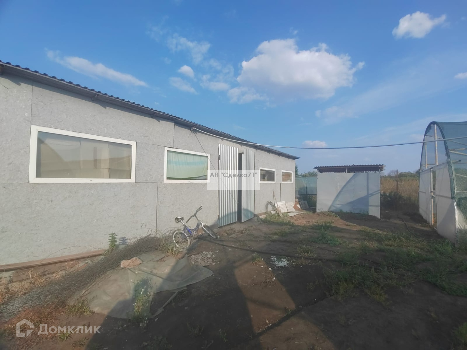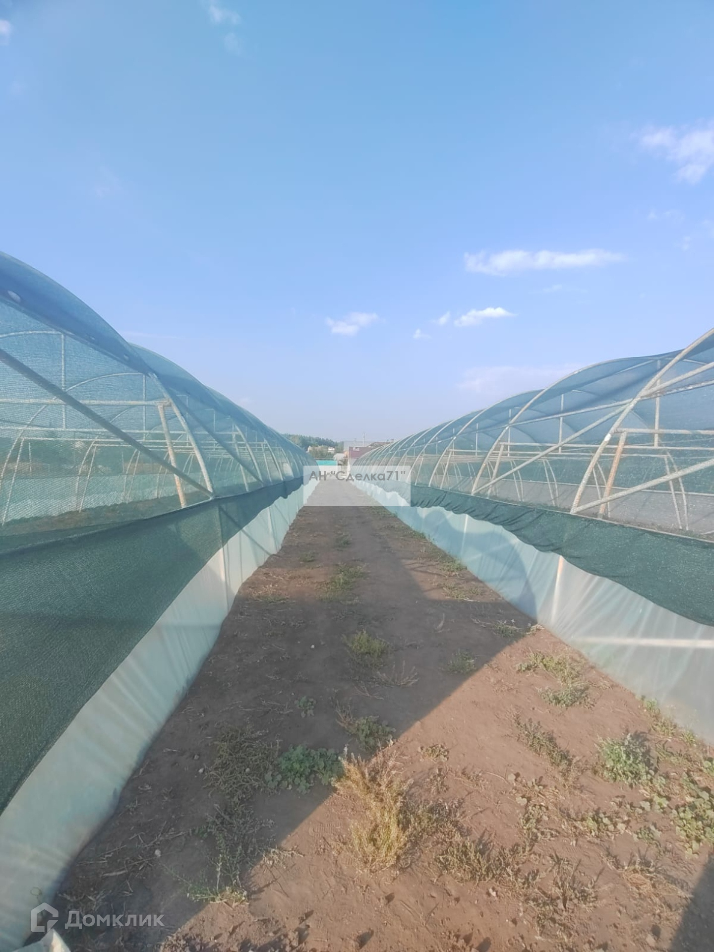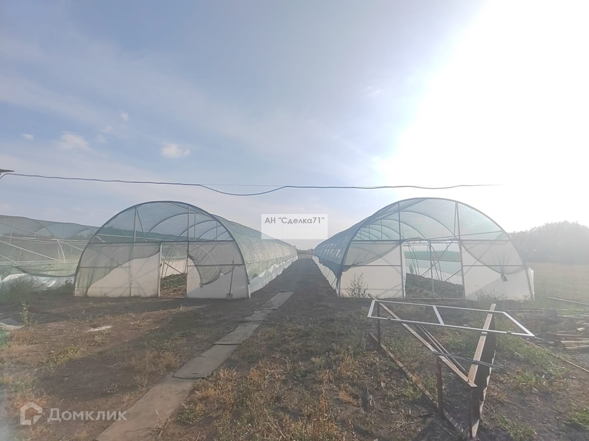 На 10 сот. Расположены три больших теплицы ( 6×48) м каждая.