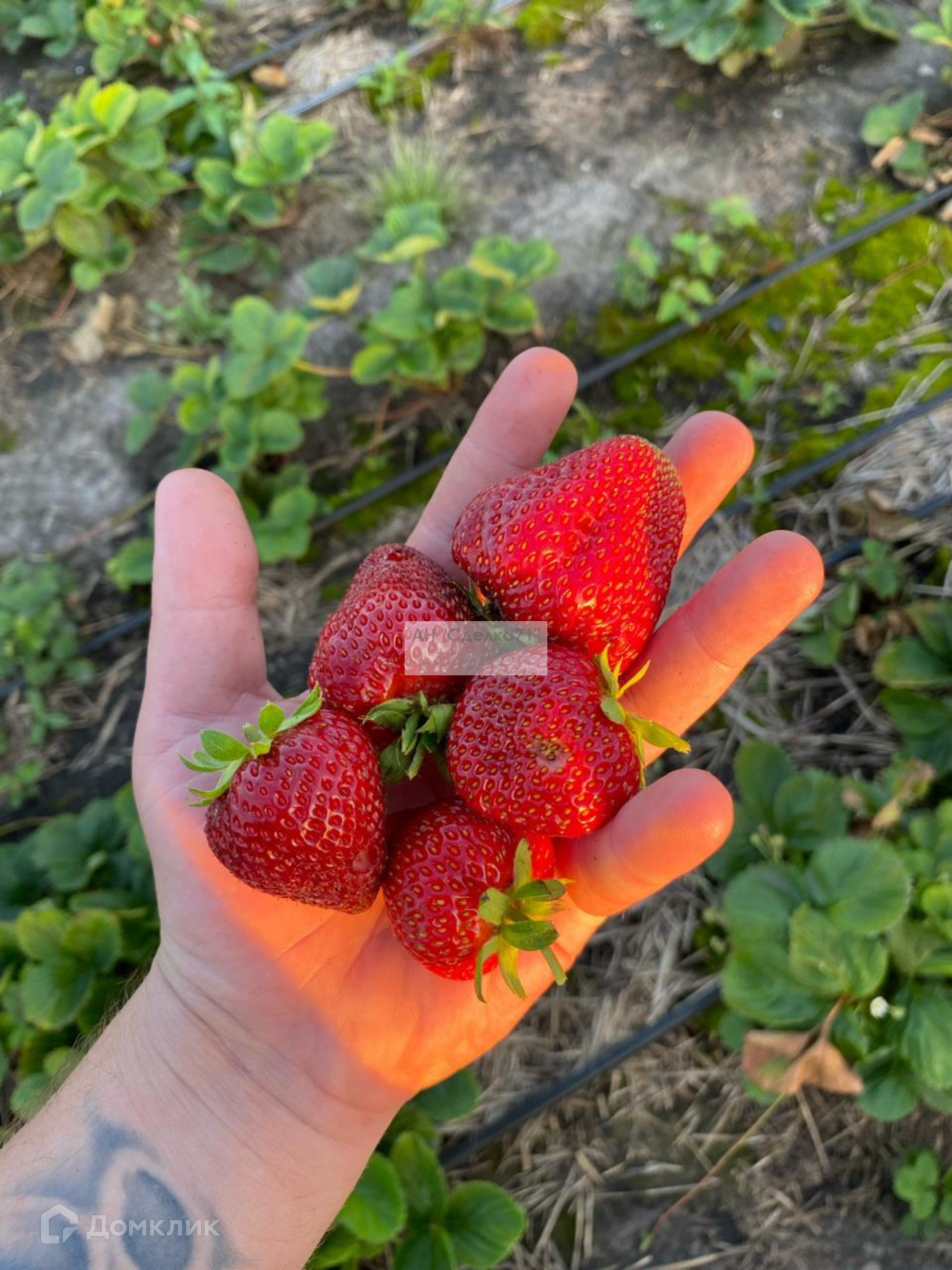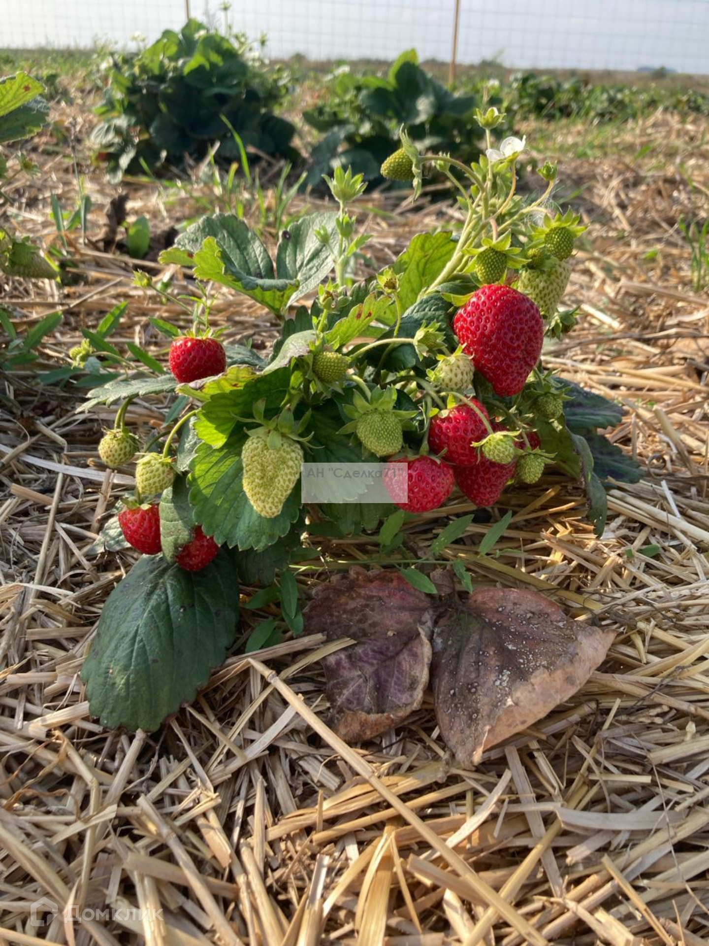 На участке уже посажена ремонтантная клубника, под капельным поливом.