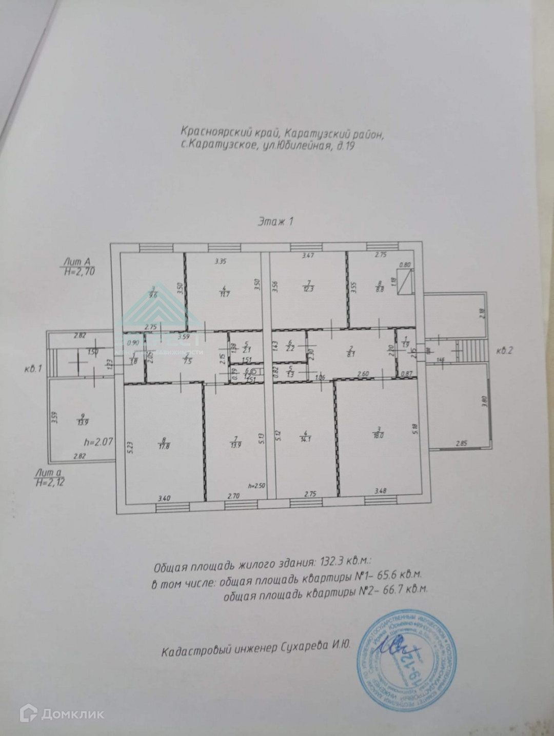 Жилая площадь 65.6 м2