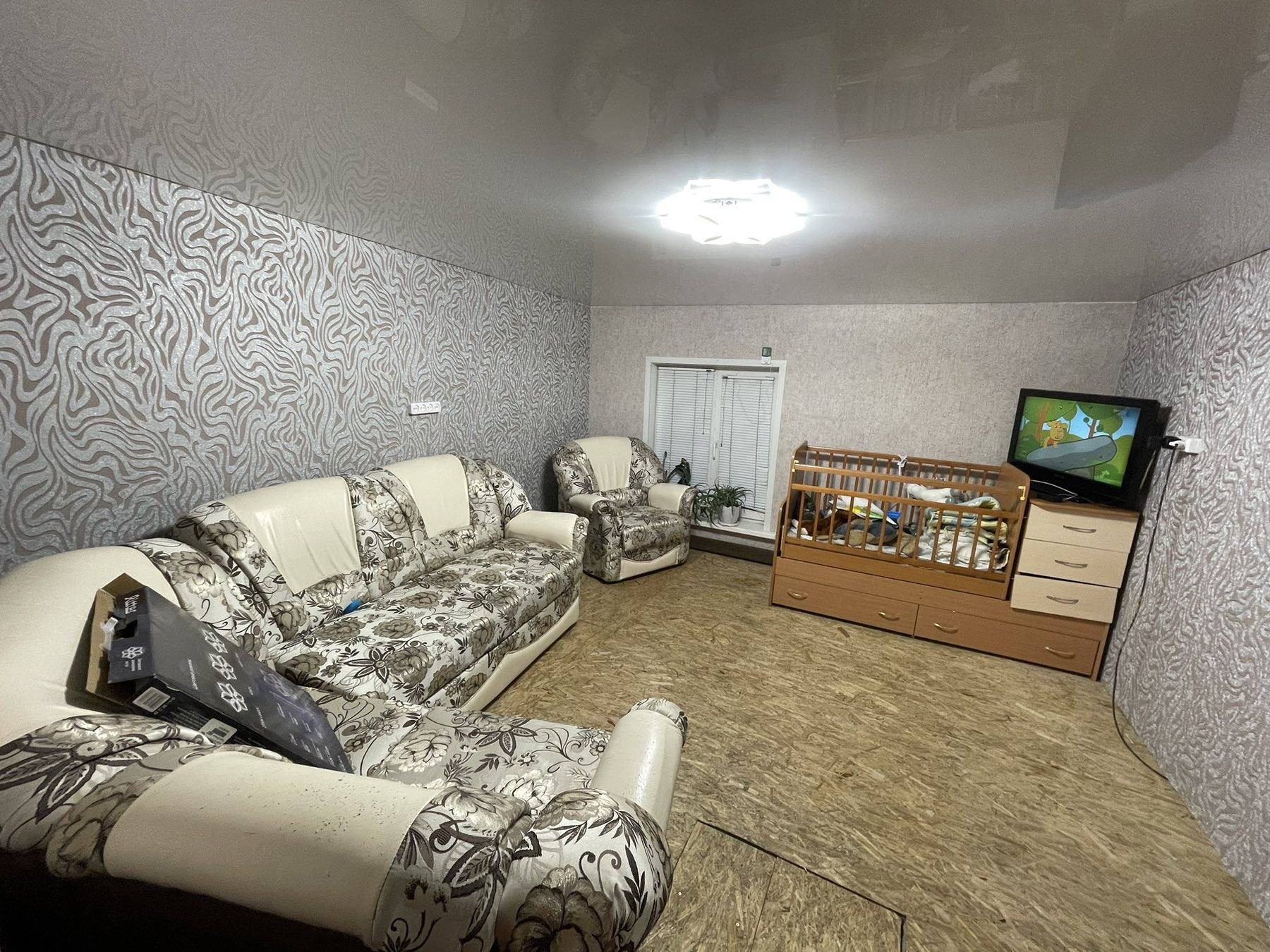 Хороший отдельный домик. Комнаты: зал, кухня, ванная комната (душ, унитаз, раковина, стиральная машина), спальня, прихожая, котельная. Была полностью переделана старая часть дома и пристроено ещё 30 м² (прихожая, котельная и спальня), весь дом (60 м²) на новом фундаменте, нижний венец из шпал. Со стороны улицы заменены два нижних венца на новые, нижний из шпал. Дом изнутри обшит ОСБ, снаружи утеплен, защищён ветро-влагозащитой и обшит виниловым сайдингом (со стороны улицы и половина на участке).