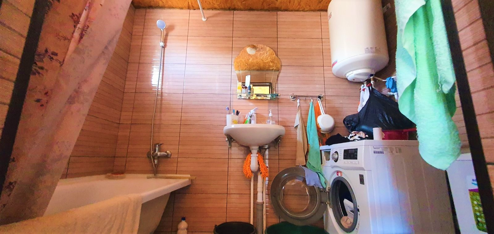 В санузле установлена новая сантехника. Санузел полностью выложен плиткой.