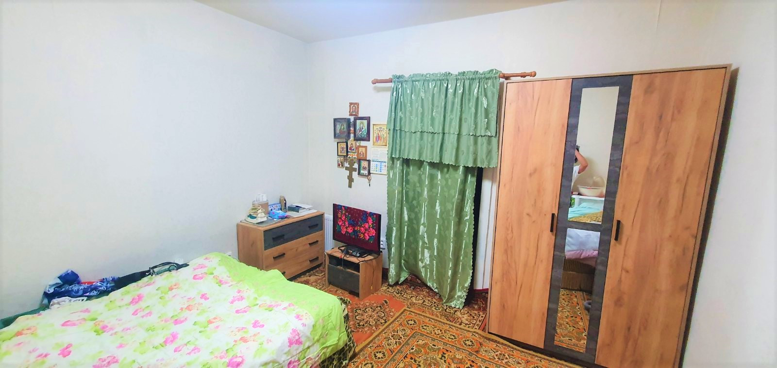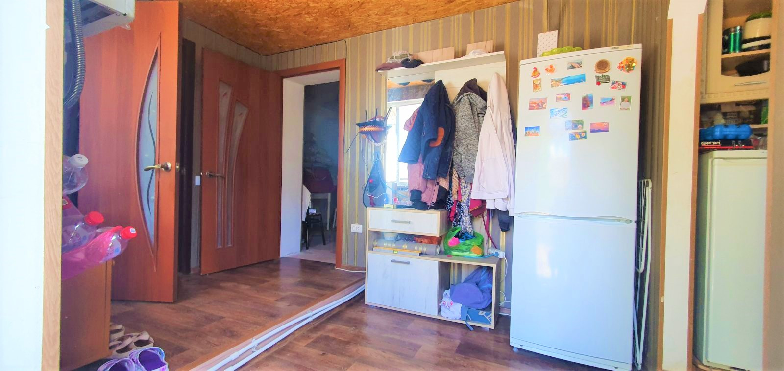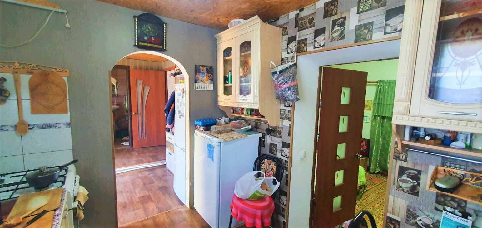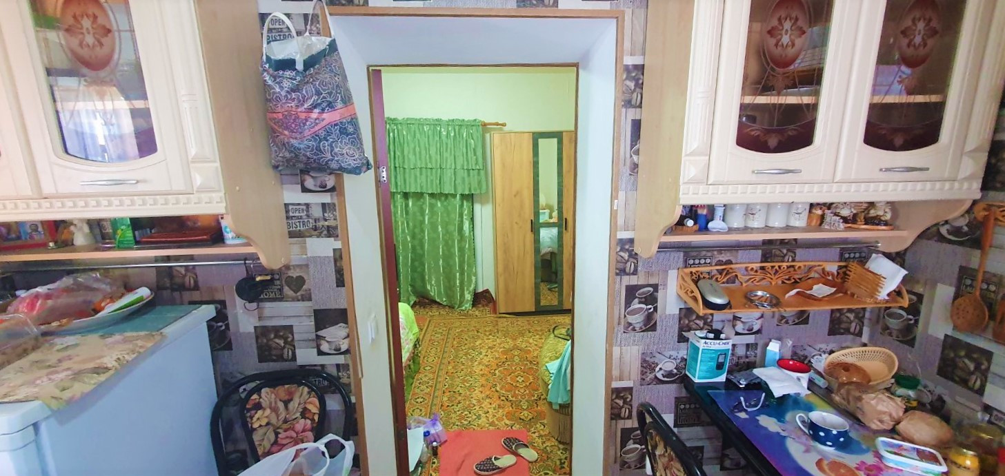 Отделка: свежий косметический ремонт, квартира сухая и тёплая, в комнатах, стены и потолок побелены, положен линолеум, установлены межкомнатные двери, и металлопластиковые окна.