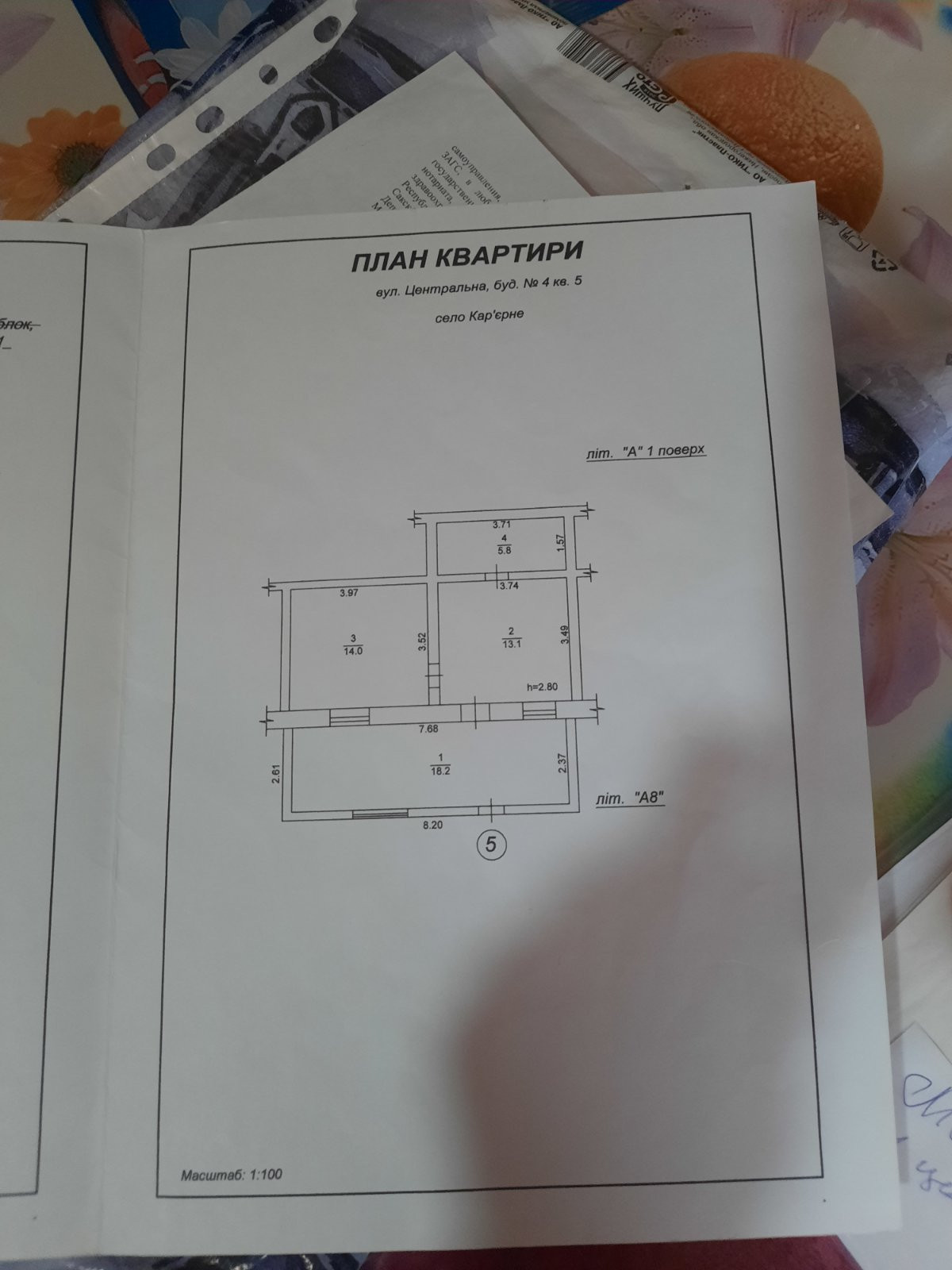 Двух смежных комнат (14 м.кв. + 13.1 м.кв.) кухни 13.1 м.кв., коридора 2 м.кв. и совмещённого санузла 3.1 м.кв. (Зарегистрированная площадь).