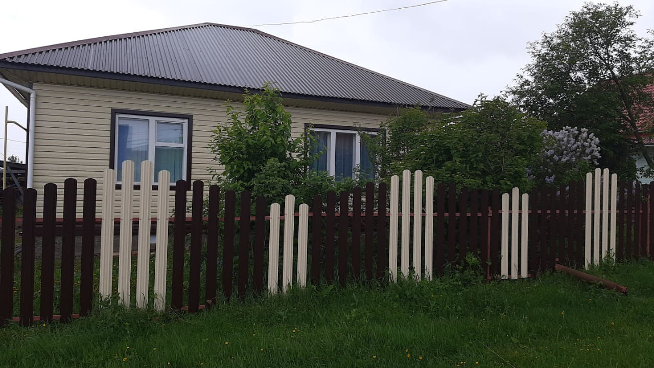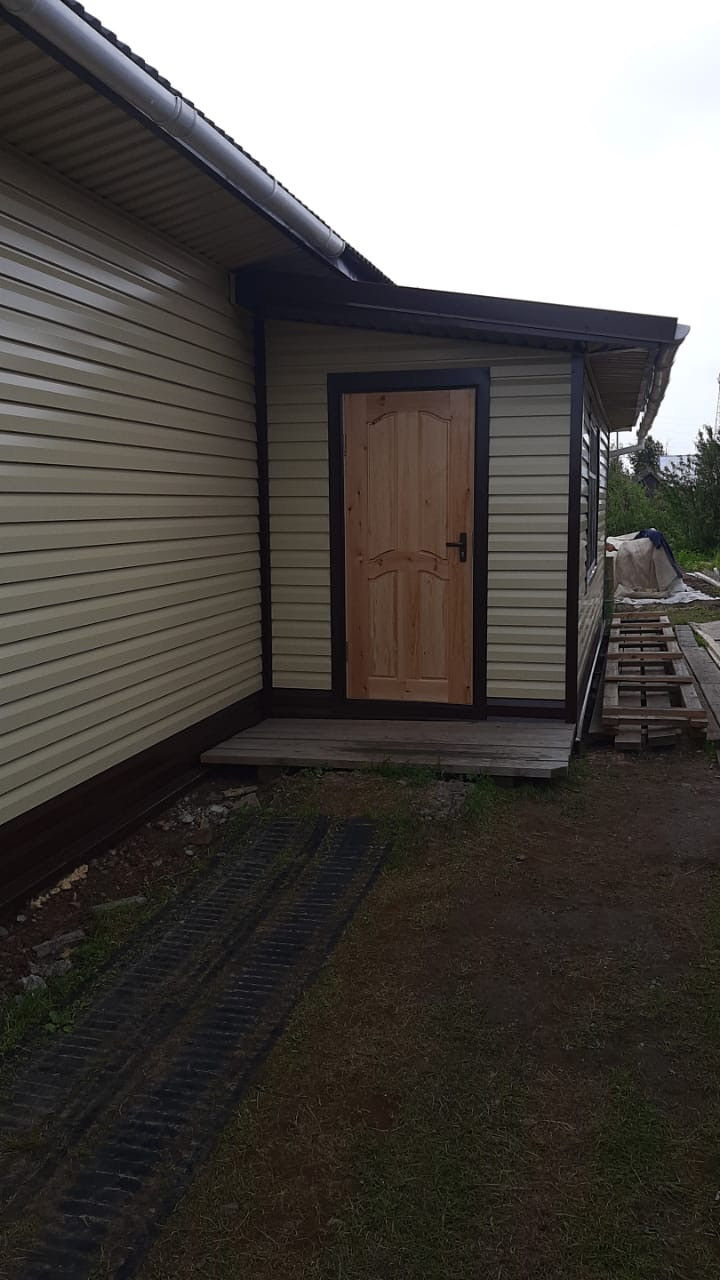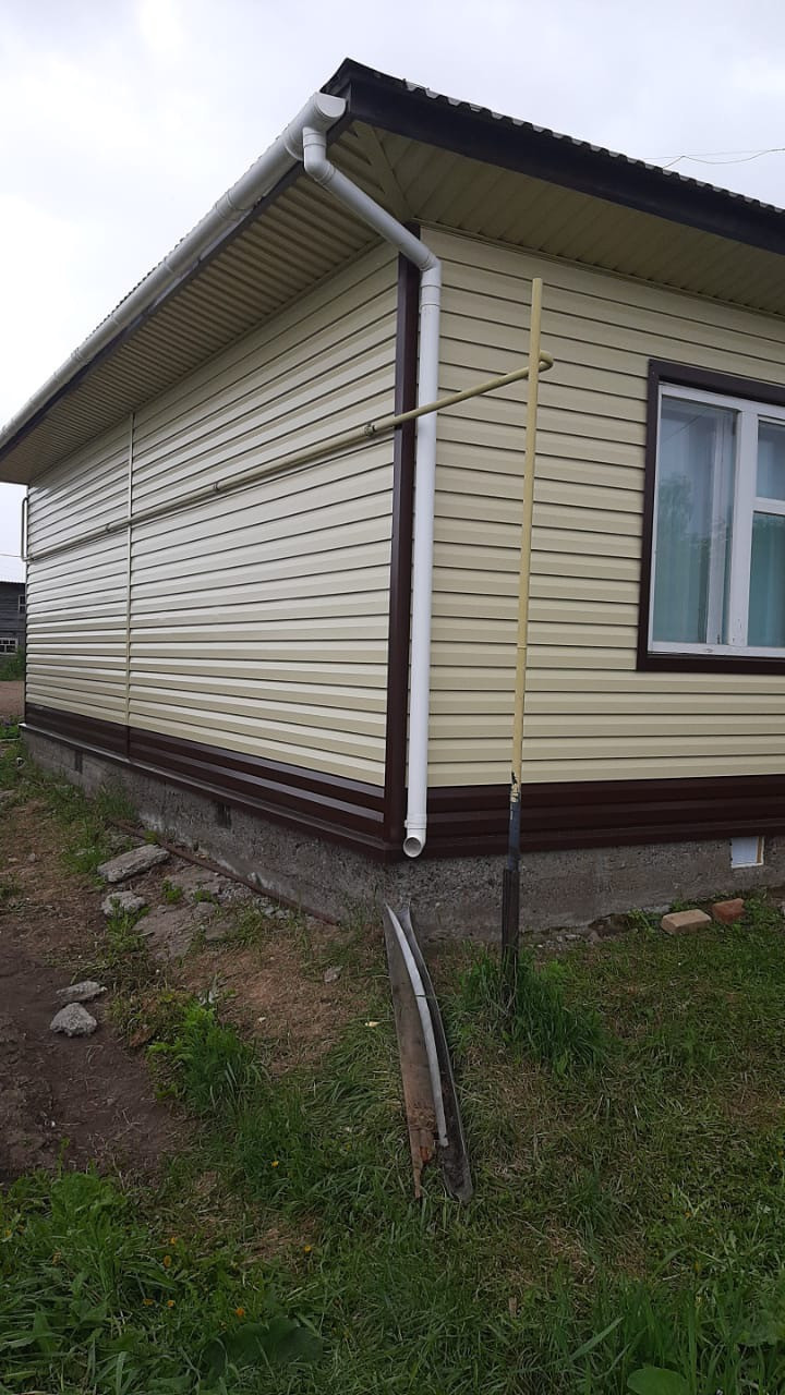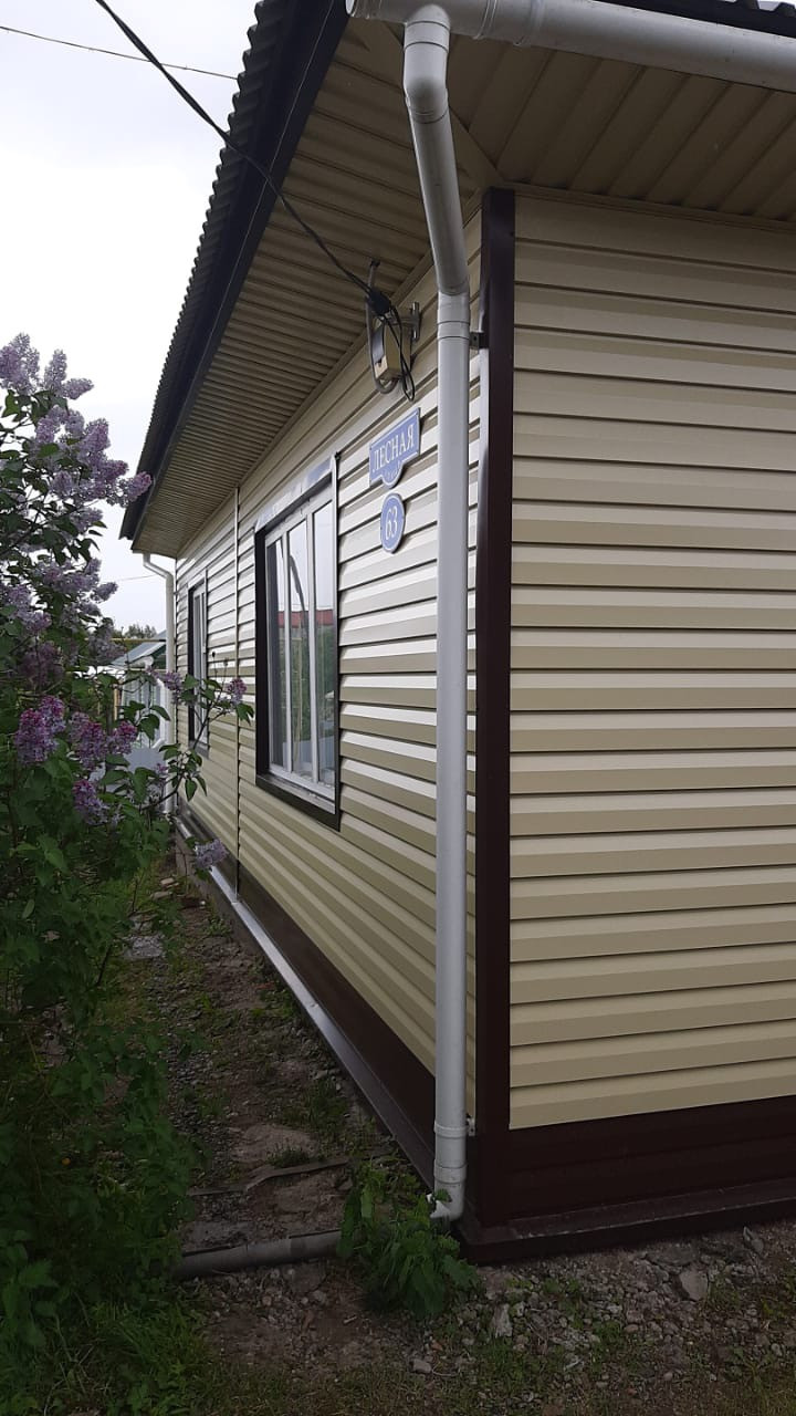 Дом обшит сайдингом, крыша железная. Дом оборудован всеми коммуникациями: газ, имеется резервный электрокотел, водоснабжение, канализация, местный-септик, туалет в доме.