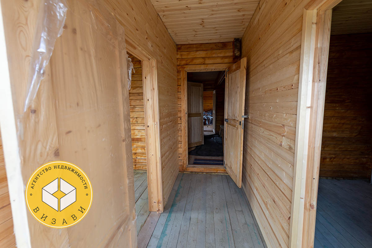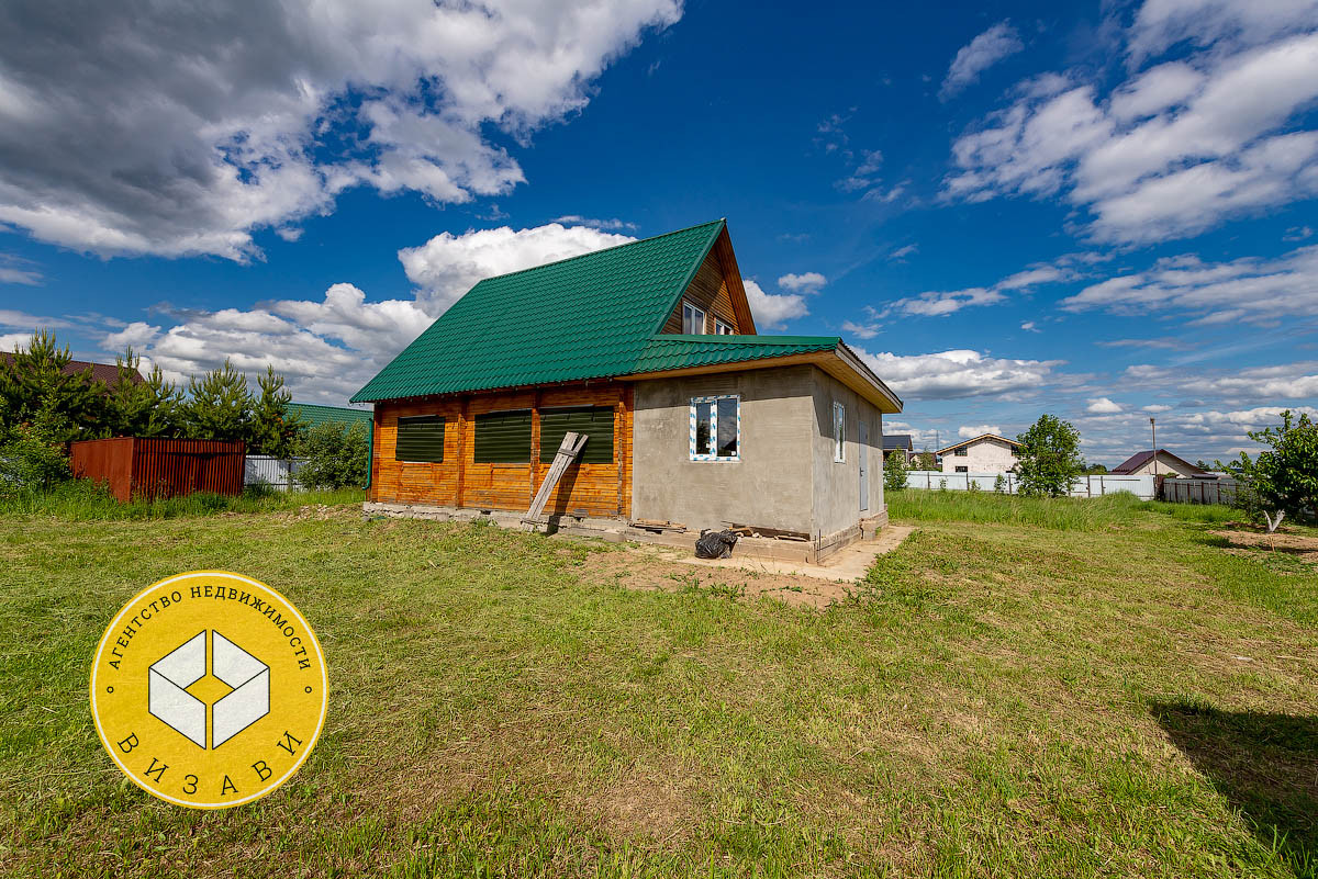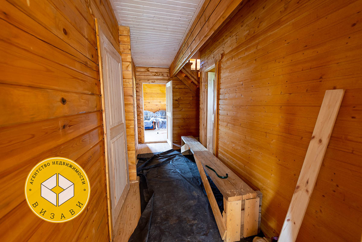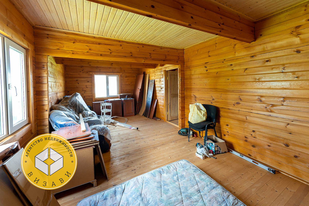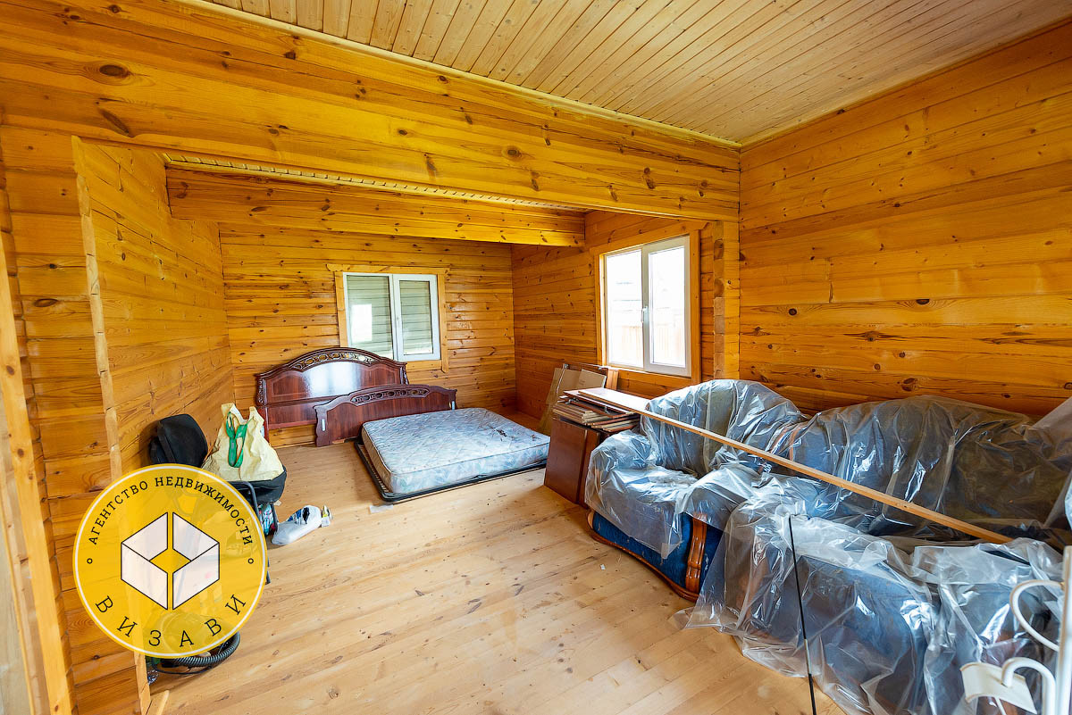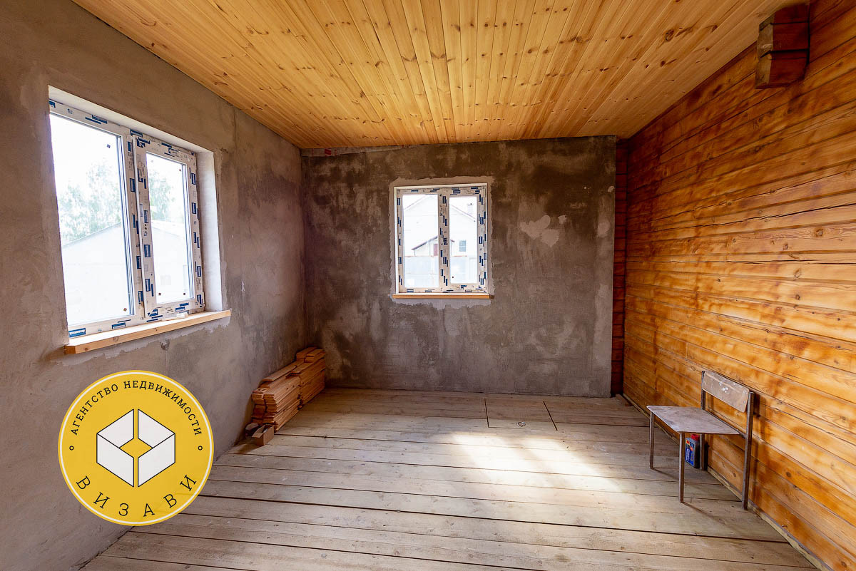Жилой 2-х этажный дом, площадью 100 м². Фундамент: ленточный, заглубление более метра, материал стен – брус 100х150 мм, под внешнее утепление. Удобная планировка первого этажа: большой холл, ванная комната, котельная, кабинет, спальная, кухня-гостиная. На втором этаже свободная планировка, планировалось три спальни и ванная комната.