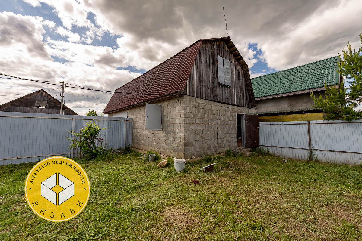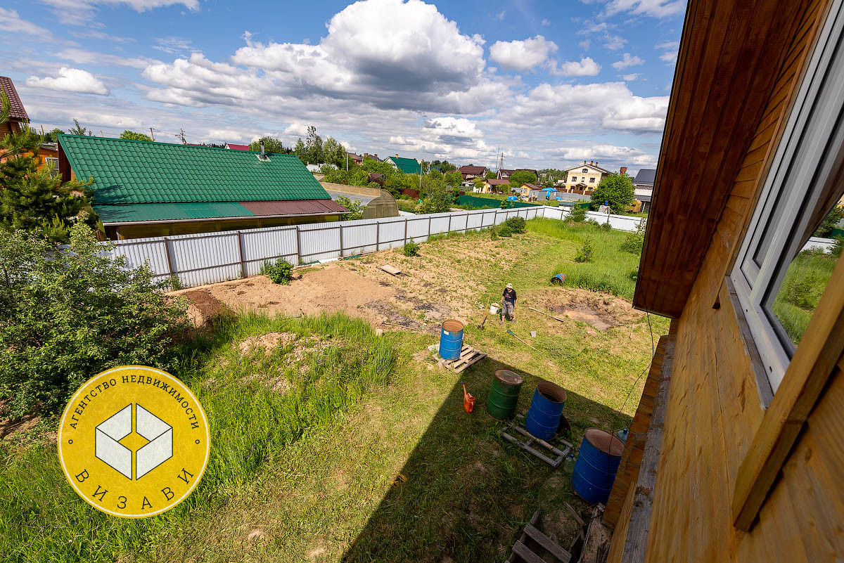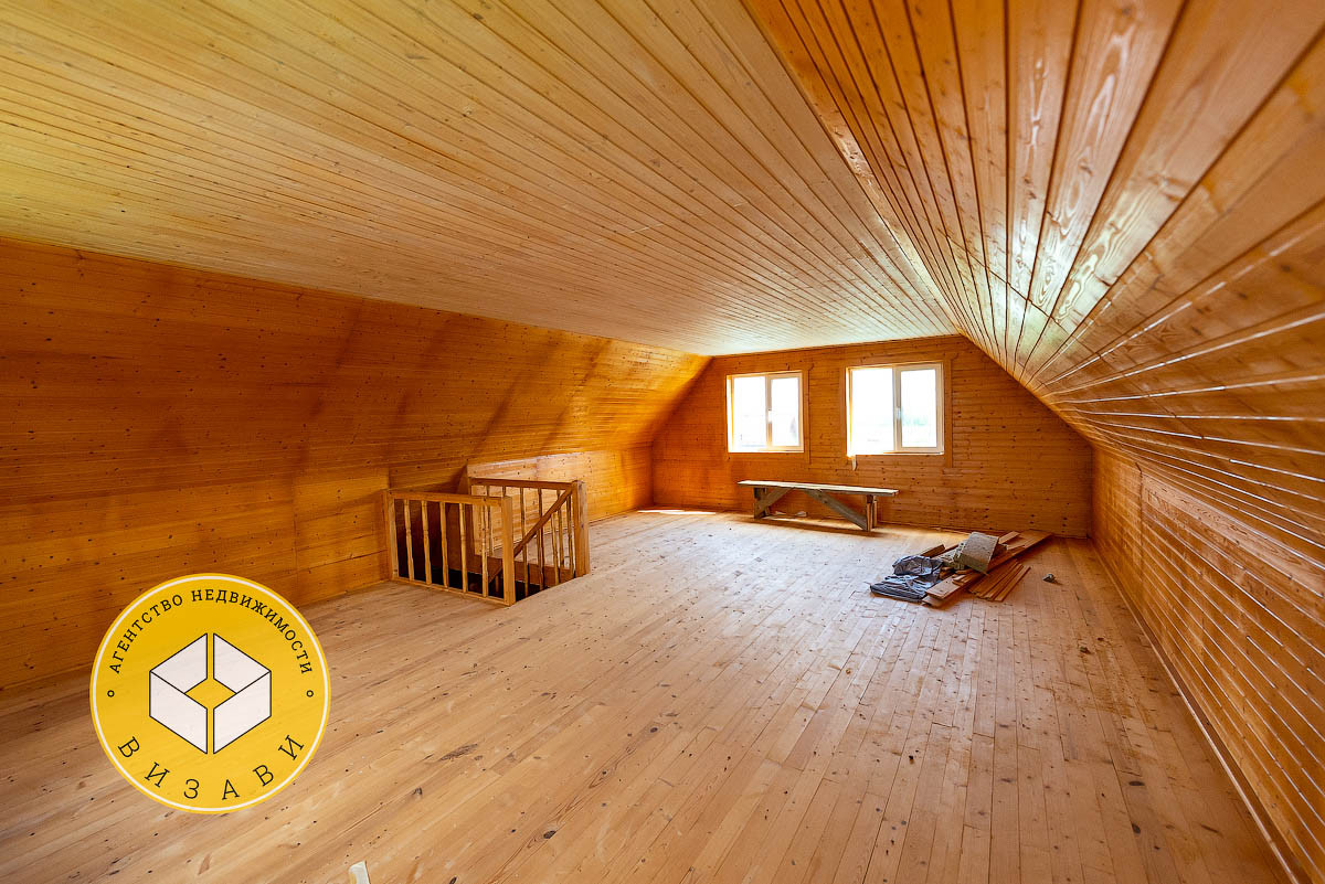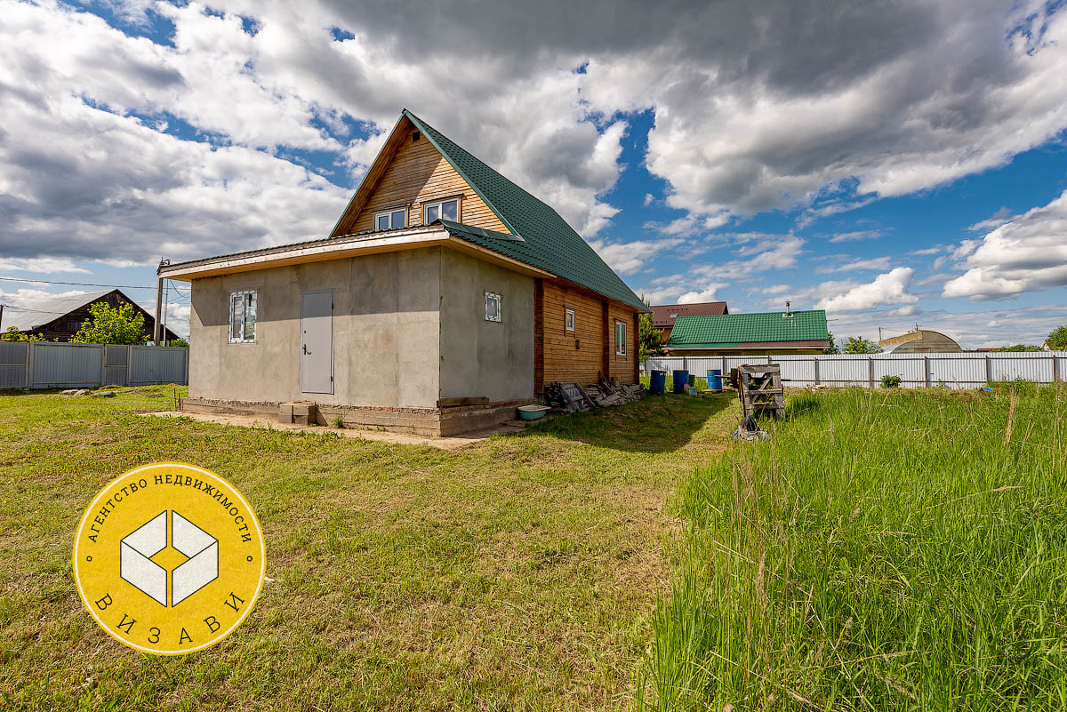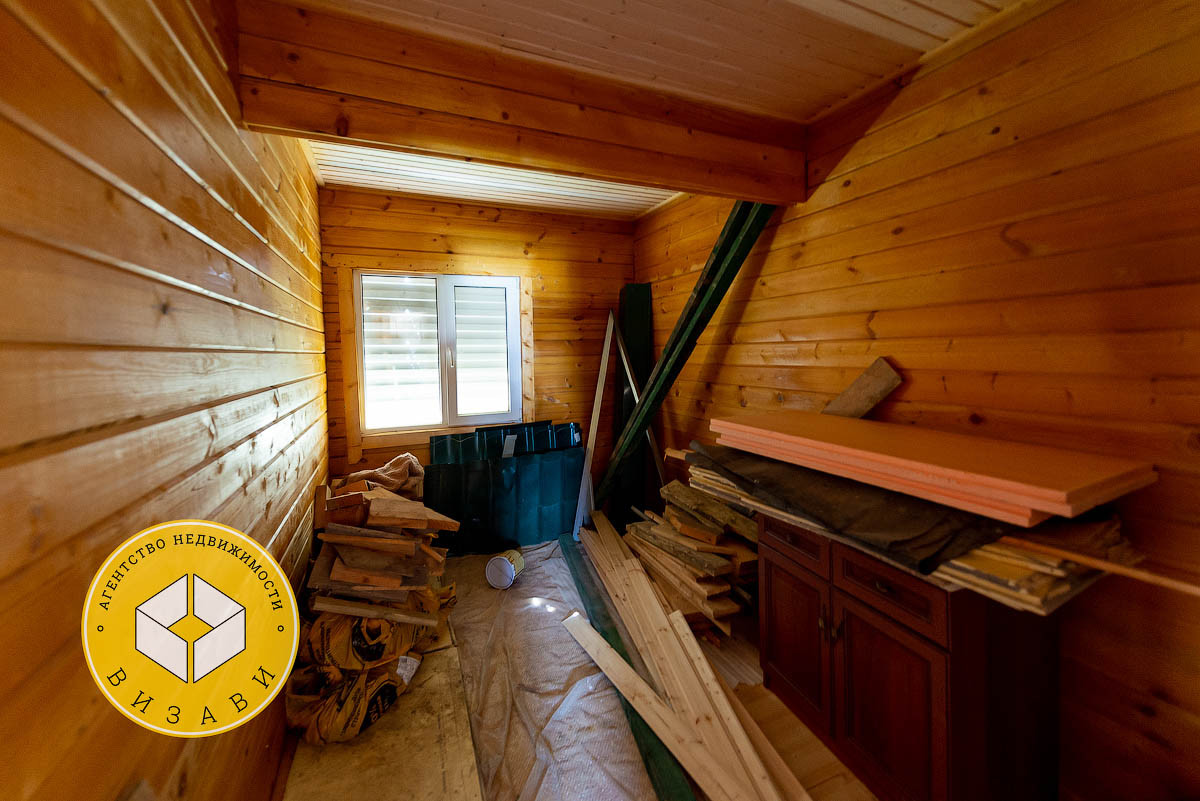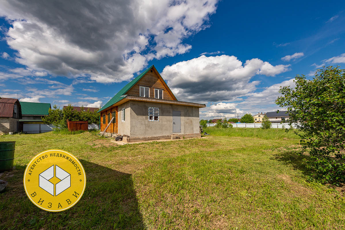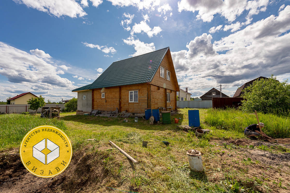 Жилой 2-х этажный дом, площадью 100 м². Фундамент: ленточный, заглубление более метра, материал стен – брус 100х150 мм, под внешнее утепление. Удобная планировка первого этажа: большой холл, ванная комната, котельная, кабинет, спальная, кухня-гостиная. На втором этаже свободная планировка, планировалось три спальни и ванная комната.