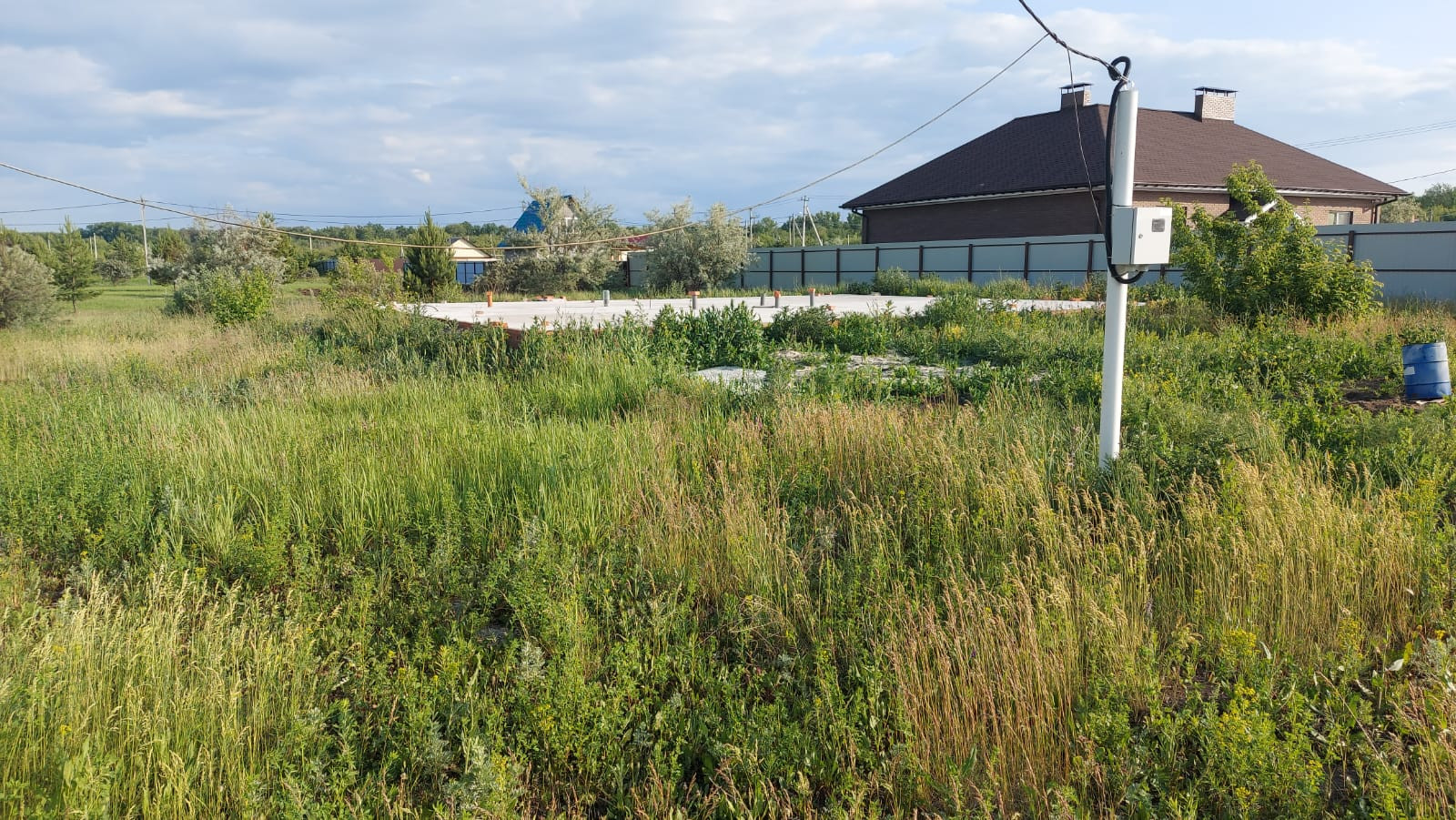 Залит фундамент под строительство 2-х этажного дома, проведены все коммуникации слив(выгребная яма), центральное водоснабждение, введено Электричество, Газ заведен.Строительный материал есть на постройку 1-го этажа.
