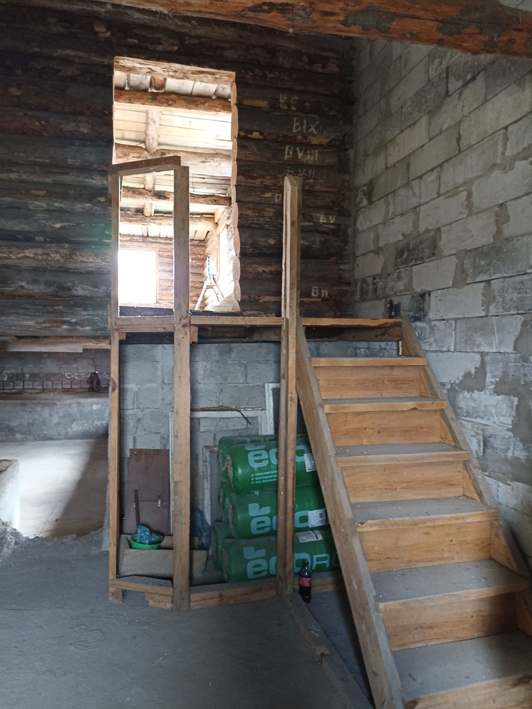Дом не достроен.Материал стен кирпич.Свет,газ проведены.Два входа.