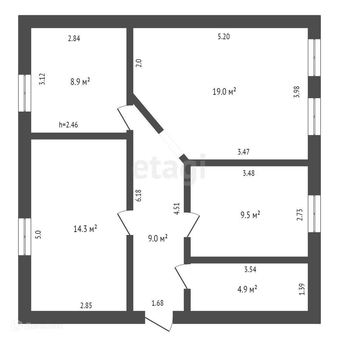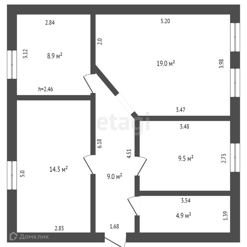 Общая площадь 65.6 м2