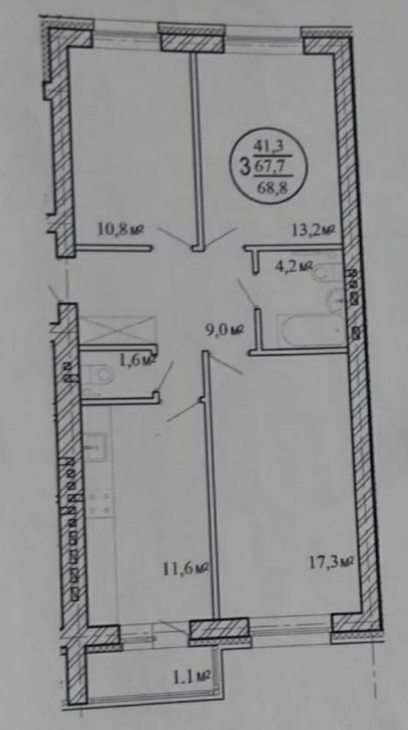 Общая площадь 67.7 м2