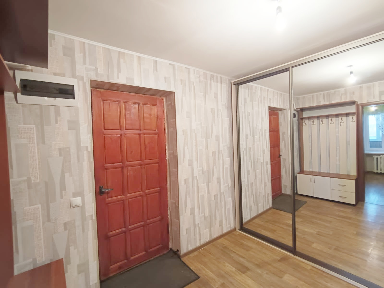 Остаётся кухонный гарнитур, водонагреватель, шкафы-купе, прихожая.