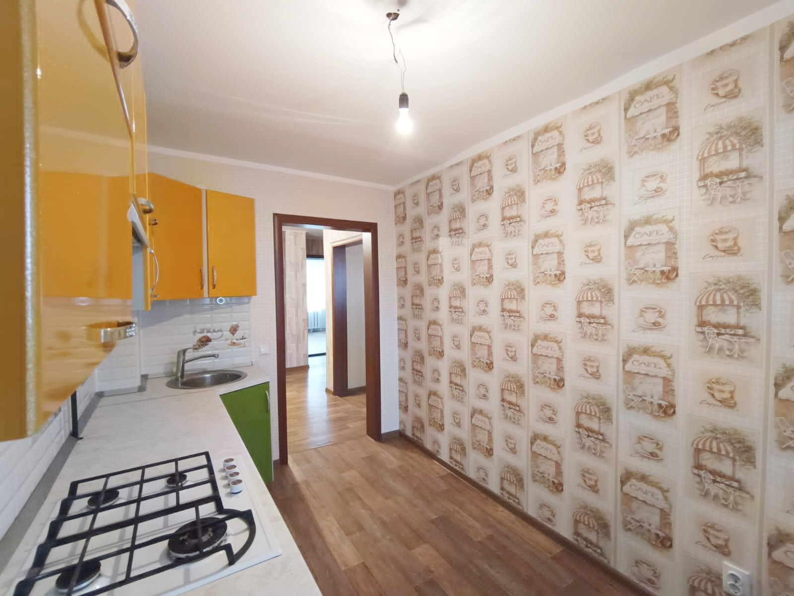 Состояние квартиры ОТЛИЧНОЕ: натяжной потолок, межкомнатные двери, качественные обои, пол хороший линолеум, балкон застеклён и обшит вагонкой.