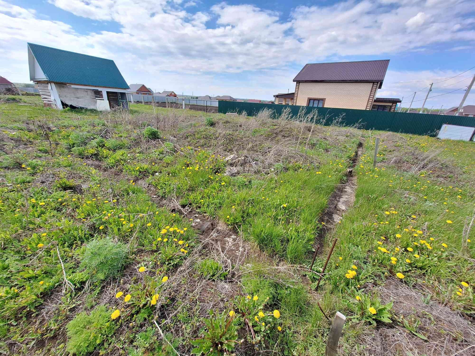 есть фундамент под дом и гараж, имеется баня