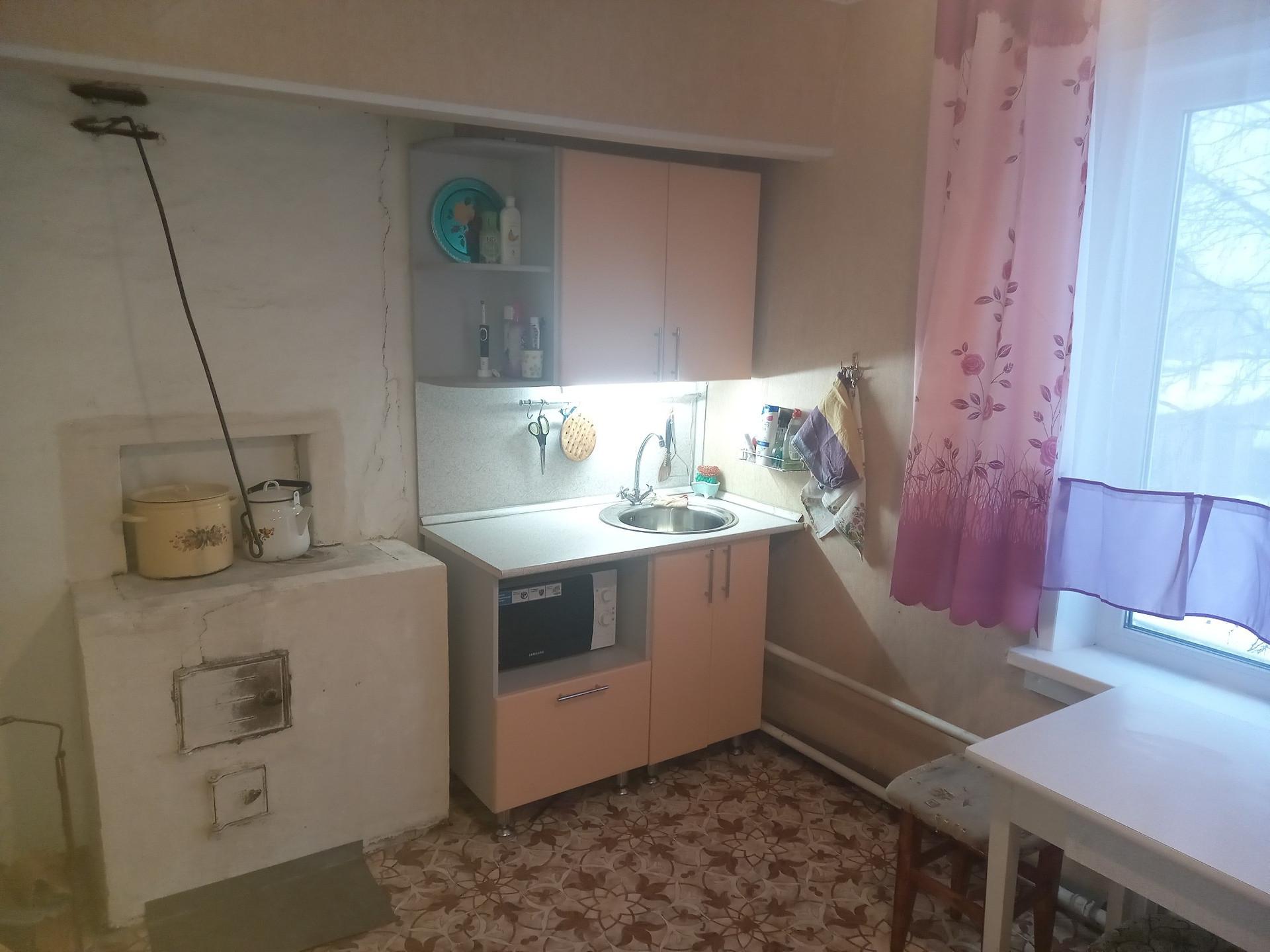 Квартира площадью 56,1 кв.м., уютная, теплая и светлая. Автономное отопление (в печь встроен котел - небольшой расход дров) есть возможност установки дополнительного электрического котла. Комнаты раздельные (большая комн. -16.1 кв. м. - с выходом на балкон, маленькая комн. - 11.3 кв. м. Балкон 1,3 кв.м., застеклен деревянными рамами. Во всей квартире установлены качественные стеклопакеты, кроме сан узла и кладовой. Заменена электрическая проводка. Входная металлическая дверь.Центральное водоснабжение, установлен водонагреватель. Канализация. Возле дома –баня, сарай, дровеник, грядки.