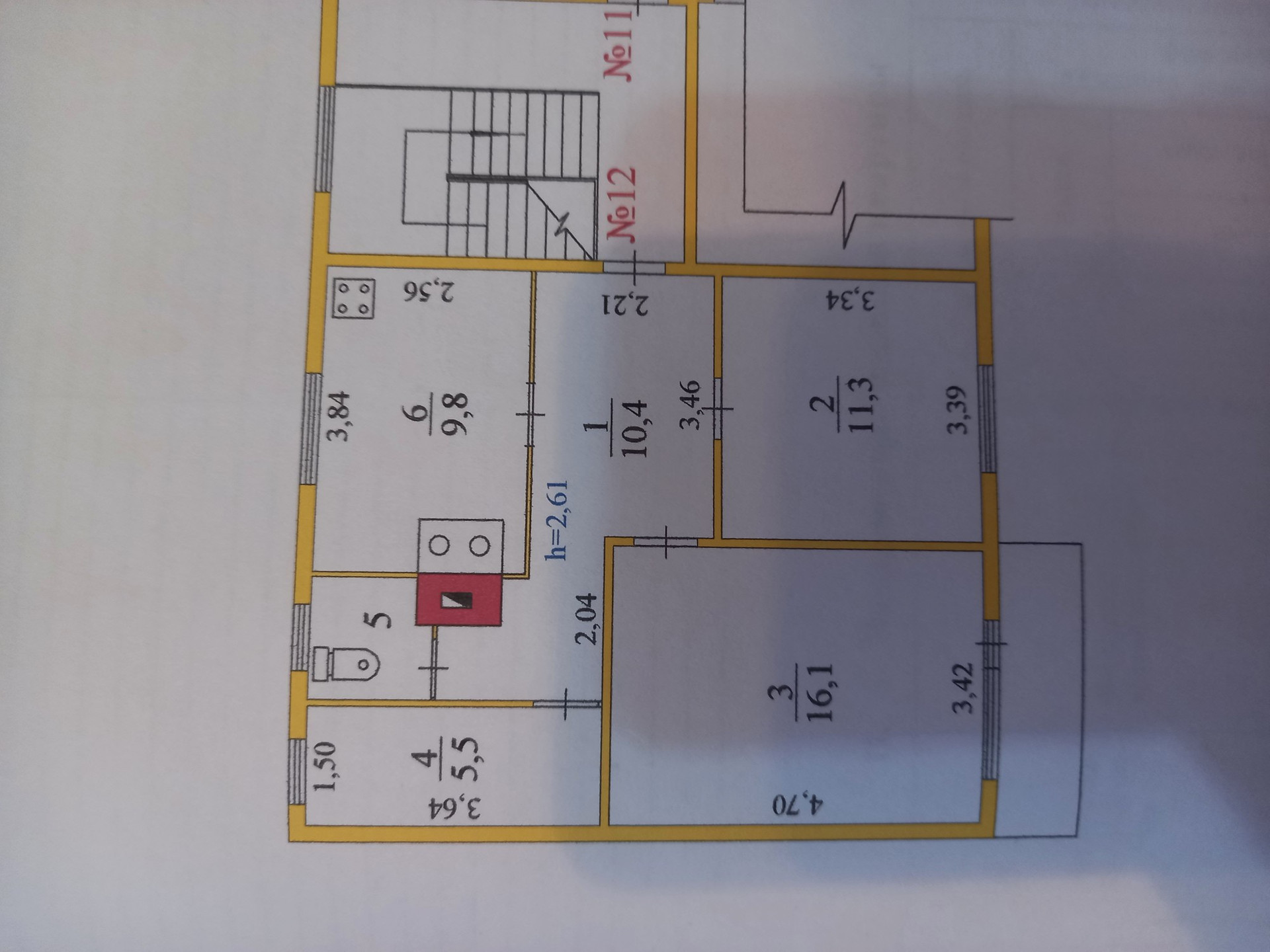 Высота потолков 2.61 м