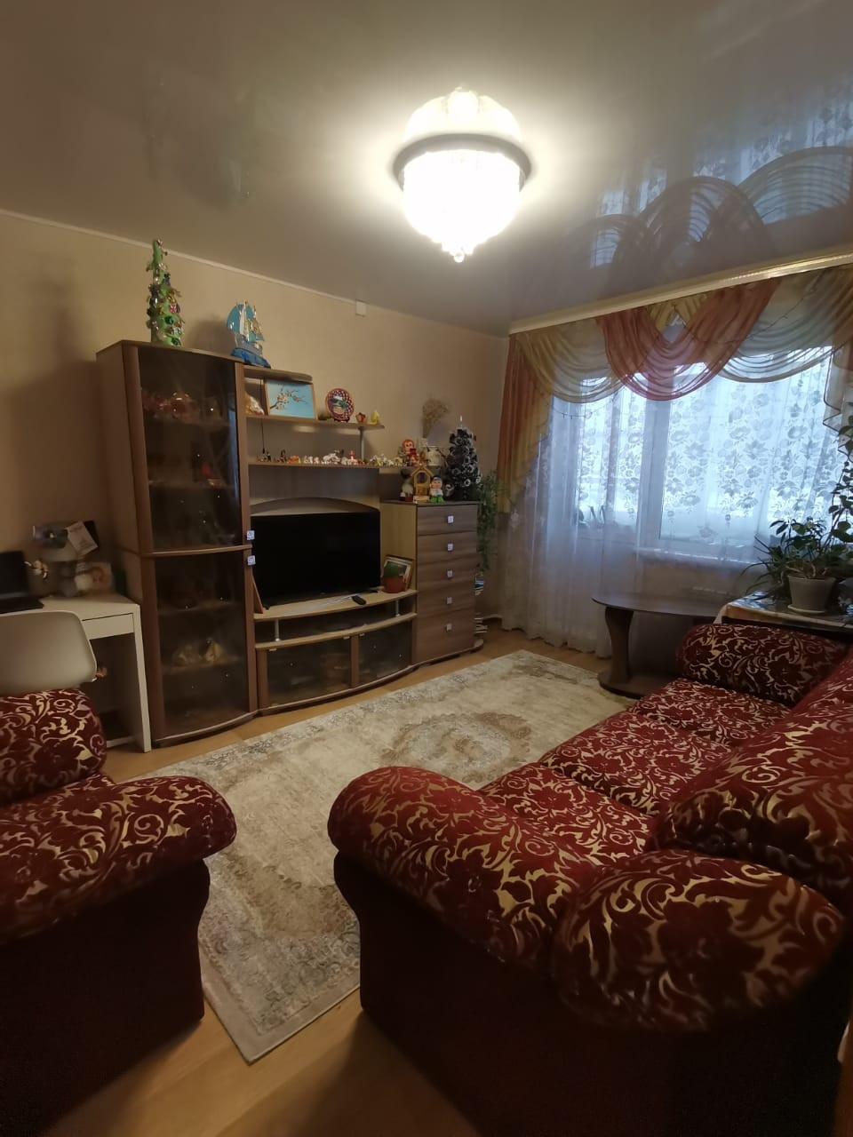 В квартире остаётся: кухонный гарнитур, спальный гарнитур, стенка- горка, мягкая мебель в большой комнате, шкаф в прихожей. Есть сарай и место для бани.