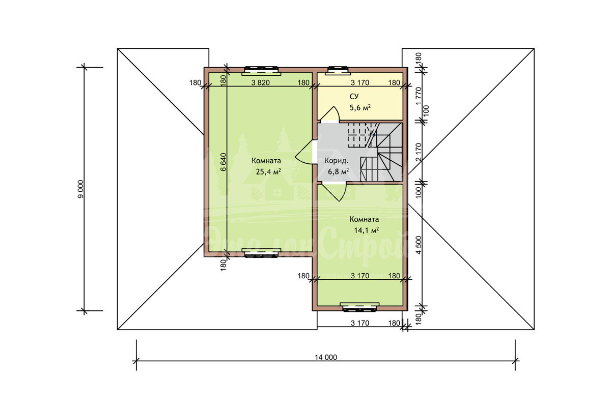 Жилая площадь дома - 120 м2, двухэтажный (второй этаж из бруса).