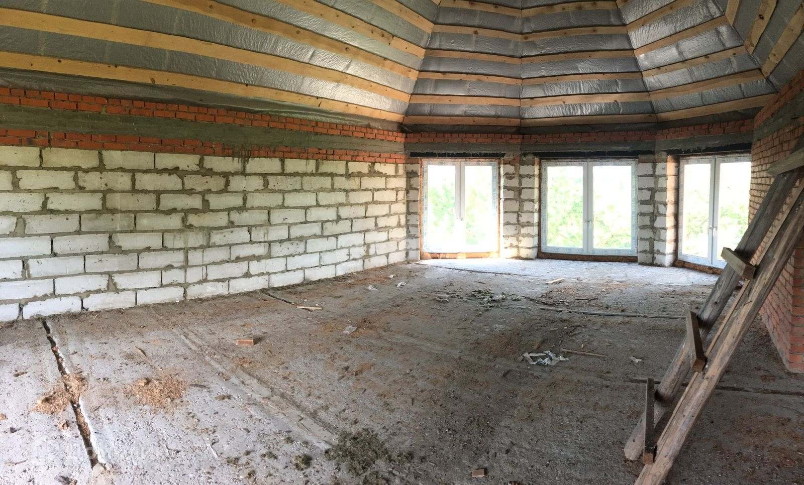 Стены – газосиликатные блоки, красный кирпич, утеплен мин. ватой;