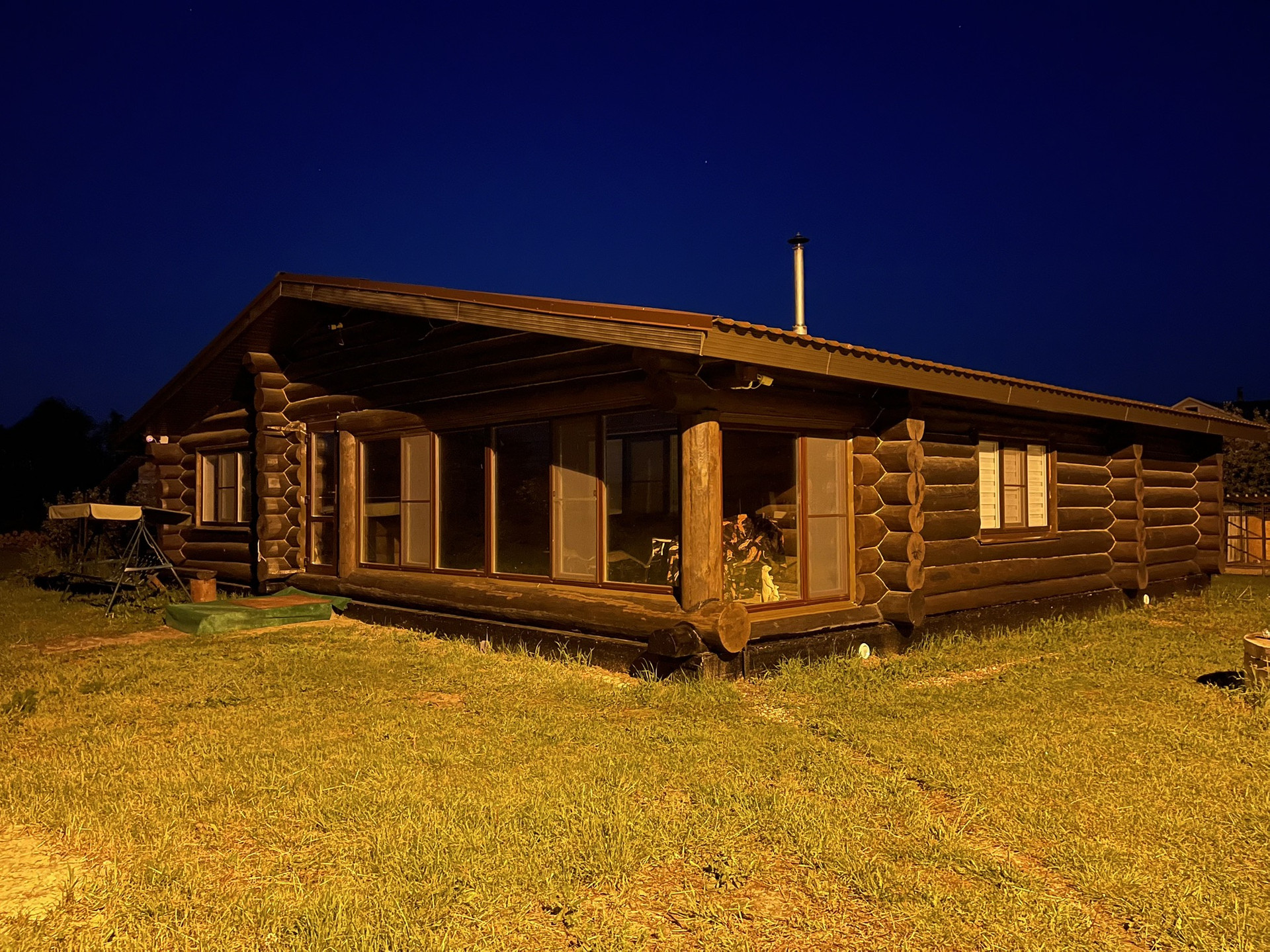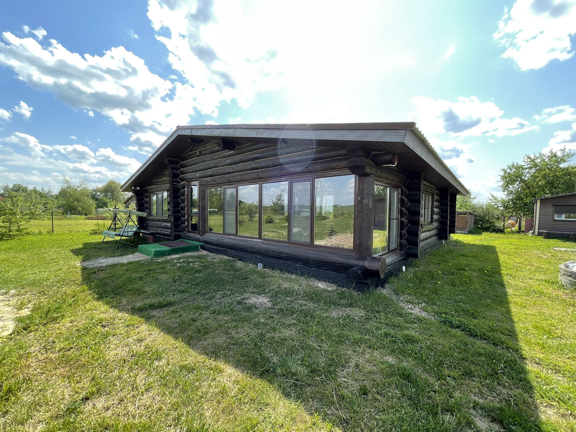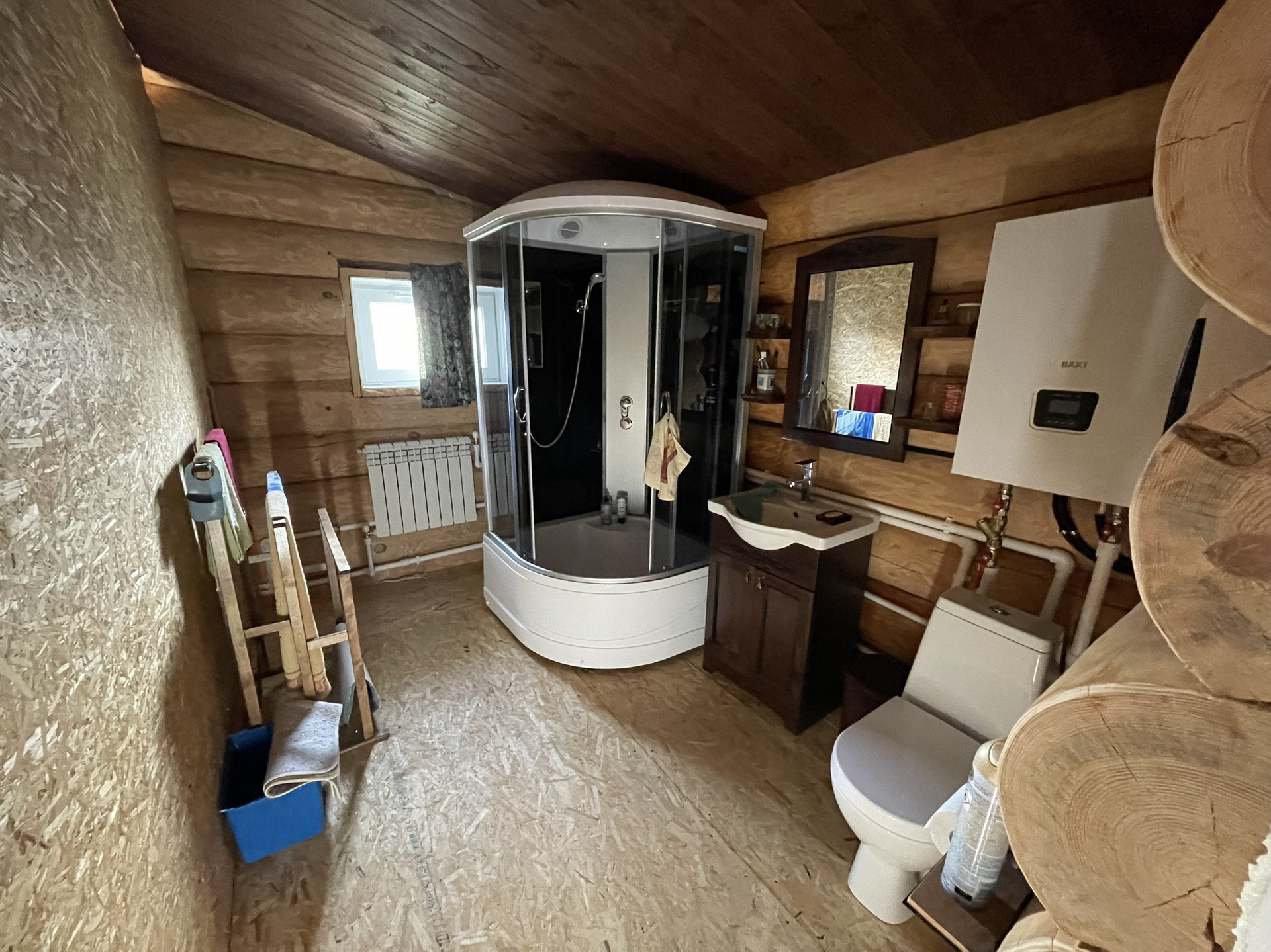 Продам новый жилой бревенчатый дом. Толщина бревна 300-400 мм — очень теплый зимой и держит прохладу летом. Крыша металлочерепица, утепление минвата толщиной 150 мм. Окна ПВХ. Полы деревянные. 3 спальни + большая кухня-гостиная. С/у совместный. Все коммуникации заведенены в дом под землёй: свет, интернет (оптоволокно), видеонаблюдение по периметру, холодная/горячая вода (скважина), отопление котел BAXI трехконтурный + в центре дома большая печь, канализация септик. Большая веранда с панорамными окнами ПВХ.