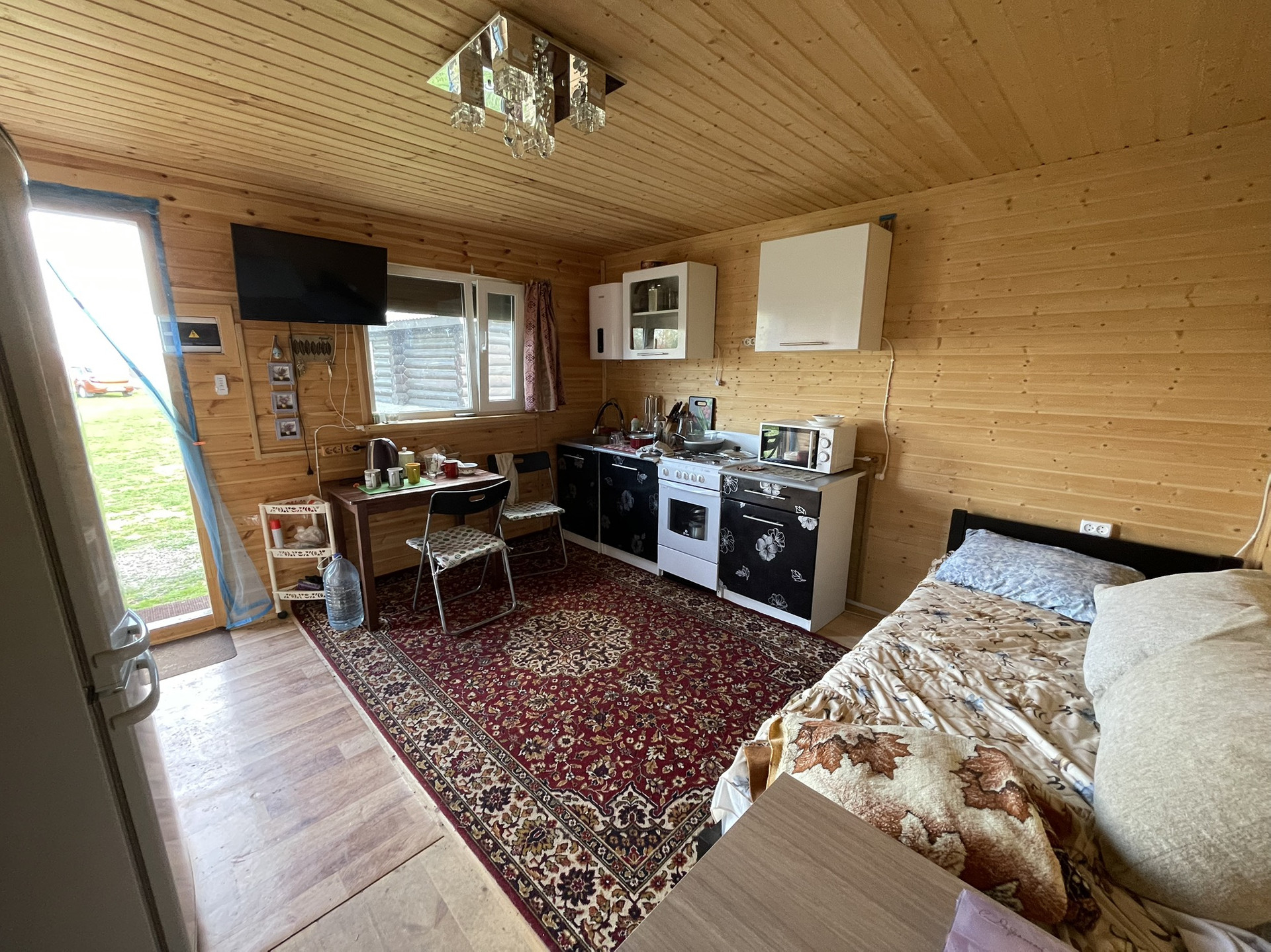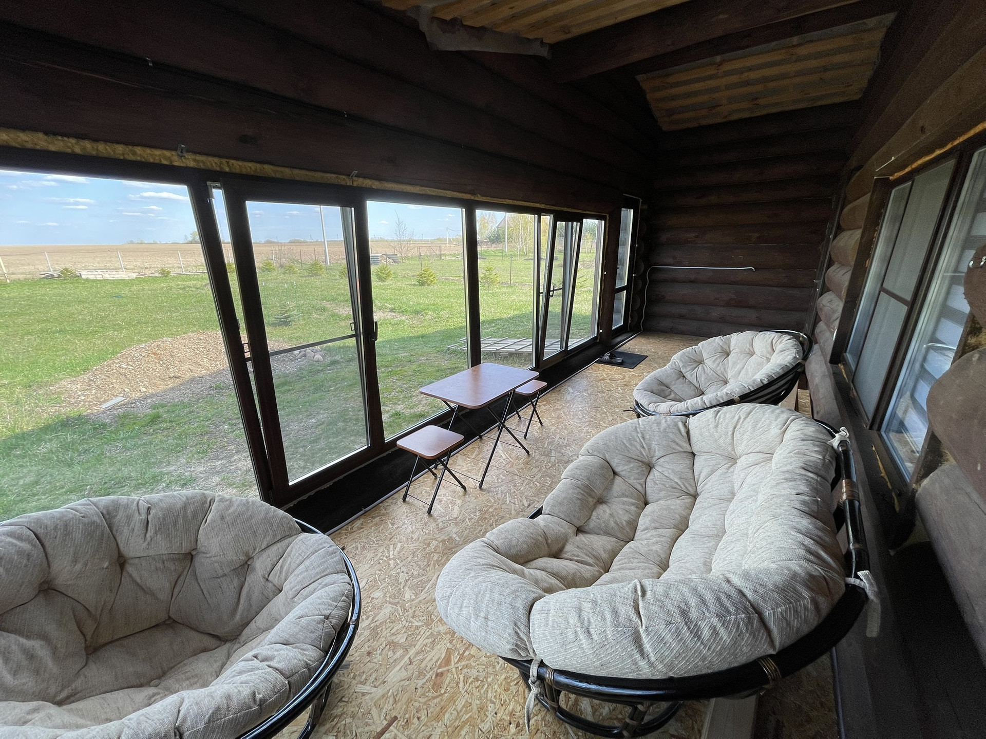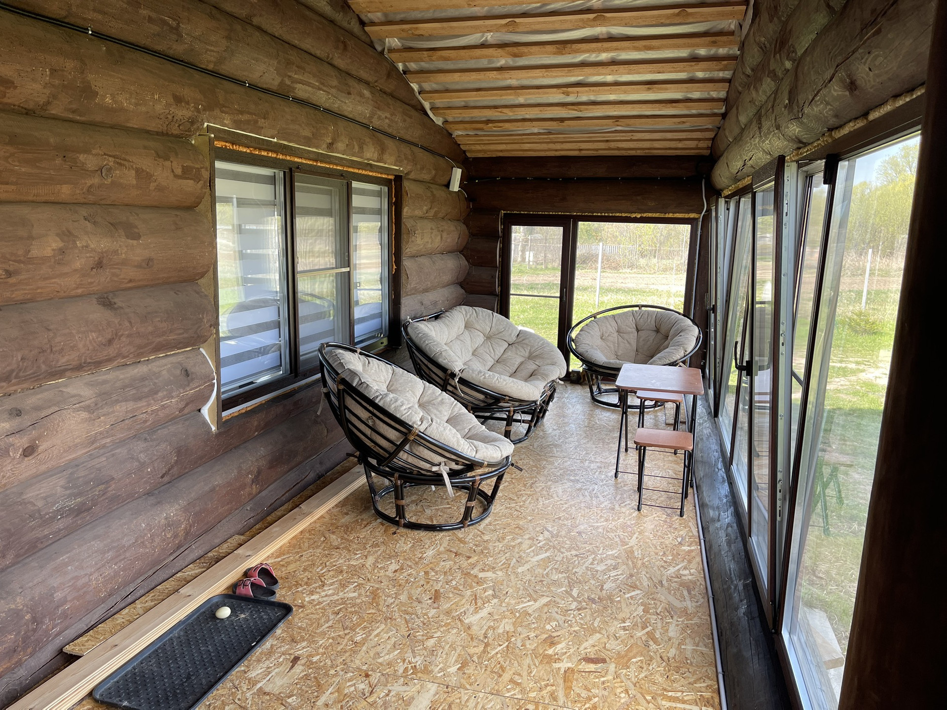Продам новый жилой бревенчатый дом. Толщина бревна 300-400 мм — очень теплый зимой и держит прохладу летом. Крыша металлочерепица, утепление минвата толщиной 150 мм. Окна ПВХ. Полы деревянные. 3 спальни + большая кухня-гостиная. С/у совместный. Все коммуникации заведенены в дом под землёй: свет, интернет (оптоволокно), видеонаблюдение по периметру, холодная/горячая вода (скважина), отопление котел BAXI трехконтурный + в центре дома большая печь, канализация септик. Большая веранда с панорамными окнами ПВХ.