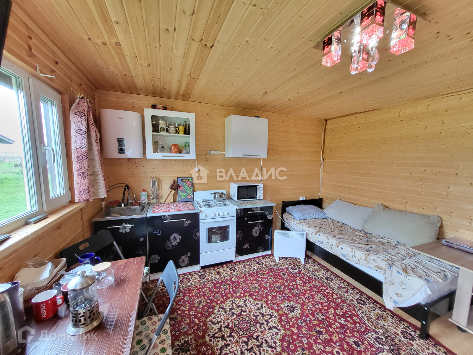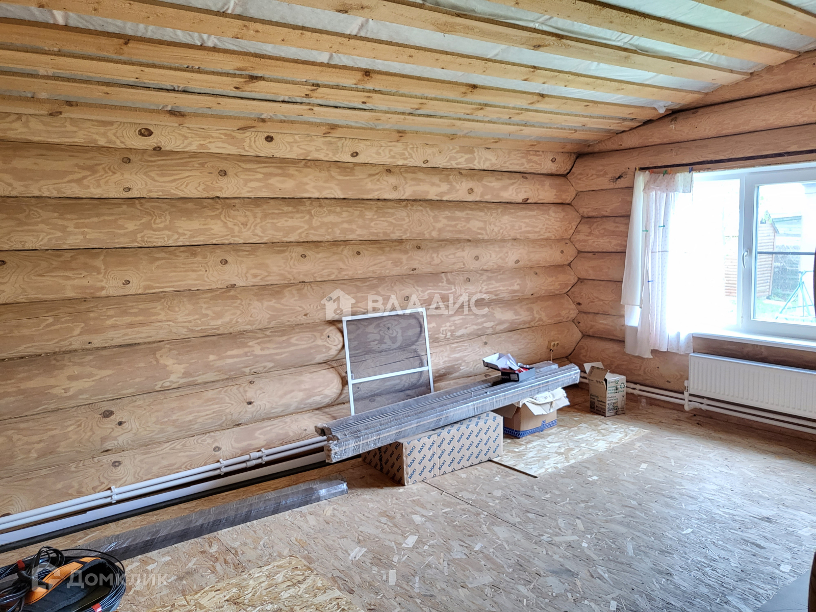 Продам новый жилой бревенчатый дом. Толщина бревна 300-400 мм — очень теплый зимой и держит прохладу летом. Крыша металлочерепица, утепление минвата толщиной 150 мм. Окна ПВХ. Полы деревянные. 3 спальни + большая кухня-гостиная. С/у совместный. Все коммуникации заведенены в дом под землёй: свет, интернет (оптоволокно), видеонаблюдение по периметру, холодная/горячая вода (скважина), отопление котел BAXI трехконтурный + в центре дома большая печь, канализация септик. Большая веранда с панорамными окнами ПВХ.