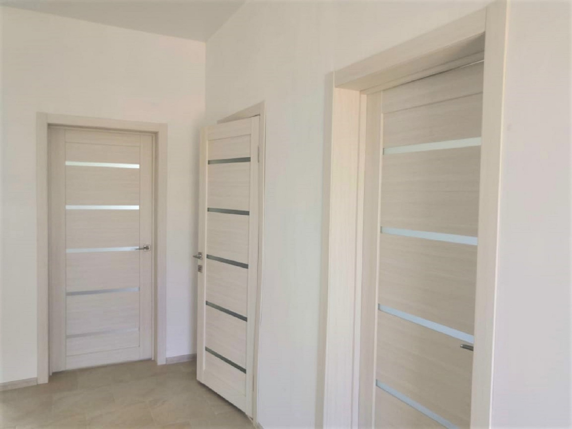 Во всем доме немецкие окна «ADEPLAST”. Окна выходят на солнечную сторону. Натяжные потолки. Сантехника присутствует. Канализация, отопление водяное - нагрев осуществляется от 3-х фазного котла (есть техническая возможность установить газовый котёл) тёплые полы, водоснабжение - скважина 54м, электричество - всё подключено и функционирует.