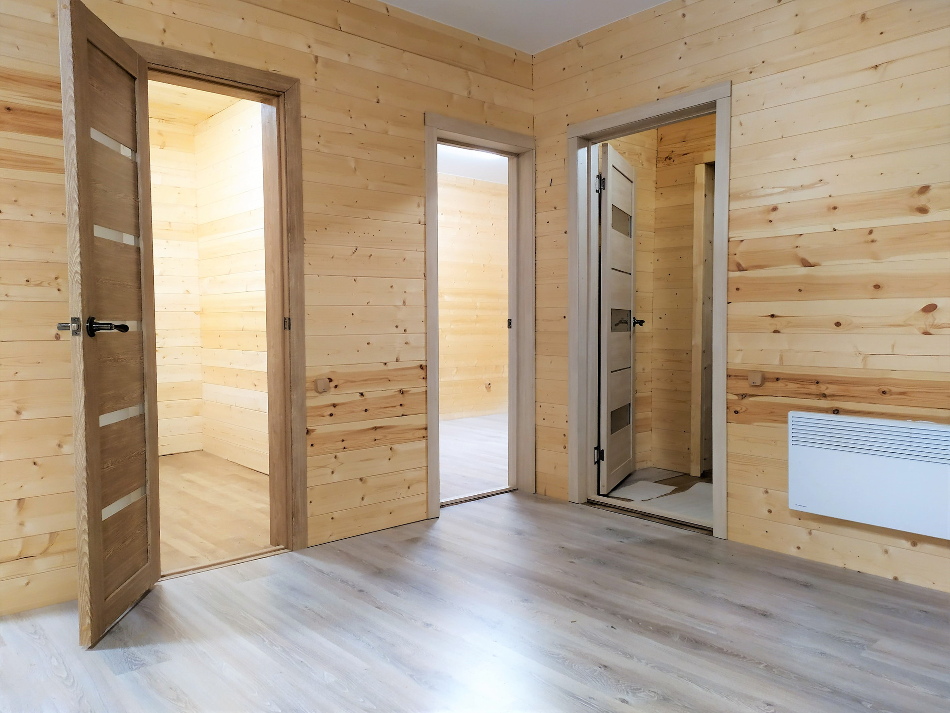 В доме ремонт из качественных материалов: ламинат 33 класса, натяжные потолки, в сан.узле пол  кварц виниловый ламинат.