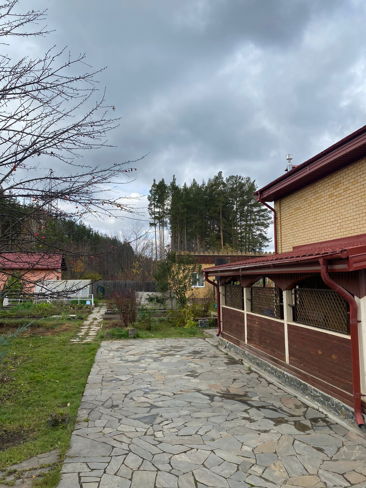 Просторный и ухоженный участок 13,6 соток. Придомовая территория и дорожки вымощены природным камнем. Множество плодовых и декоративных насаждений, 4 сорта яблонь.