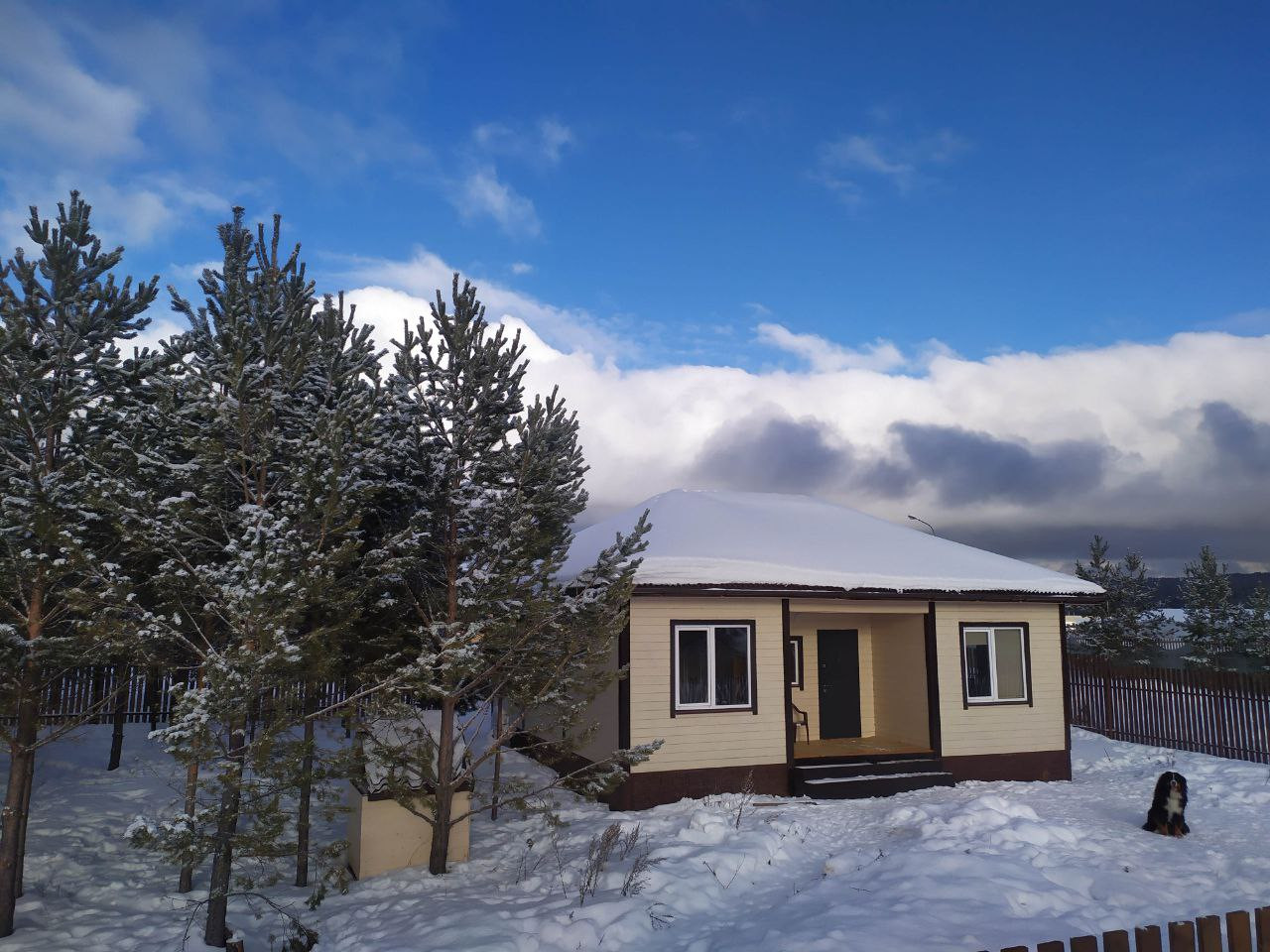 Дом построен по каркасной технологии, как популярные нынче барнхаусы. И как построены  90% домов в США, Канаде, Швеции, Норвегии. Не уступает обычным домам из блоков по прочности и теплоизоляции, превосходит по экологичности.