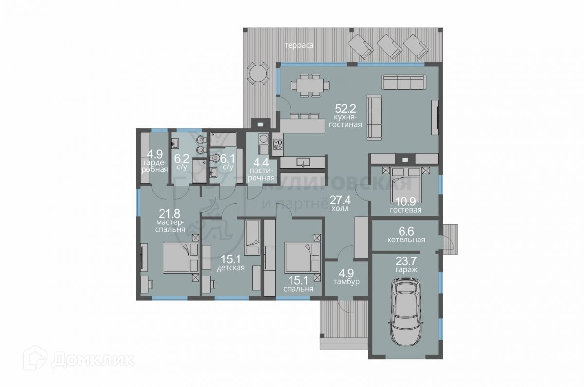Инженерные системы: газовый котел Viessmann, резервный электрокотел Vaillant, бак косвенного нагрева ACV на 320 л, теплые водяные полы с регулировкой, приточно-вытяжная вентиляция с рекуперацией Electrolux, скважина 70 м, водоподготовка c ультрафиолетовой и ионообменной очисткой, система «Умный дом», сигнализация и видеонаблюдение всего периметра участка.