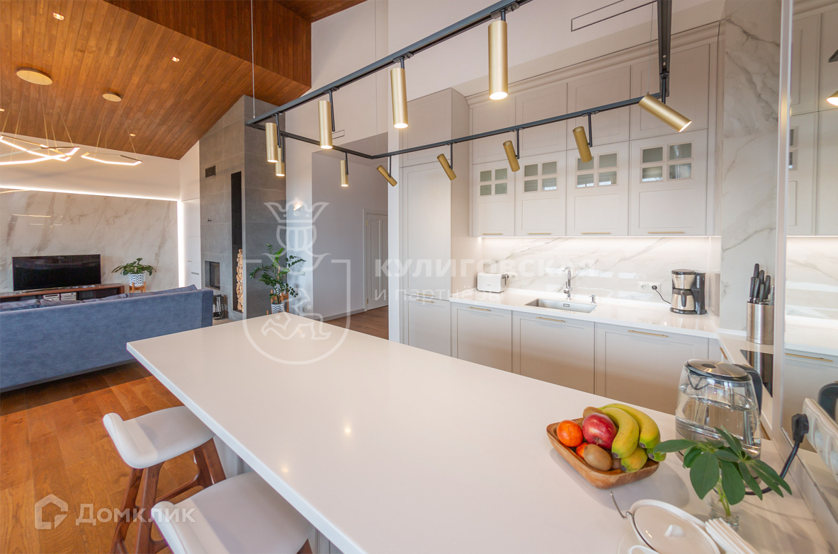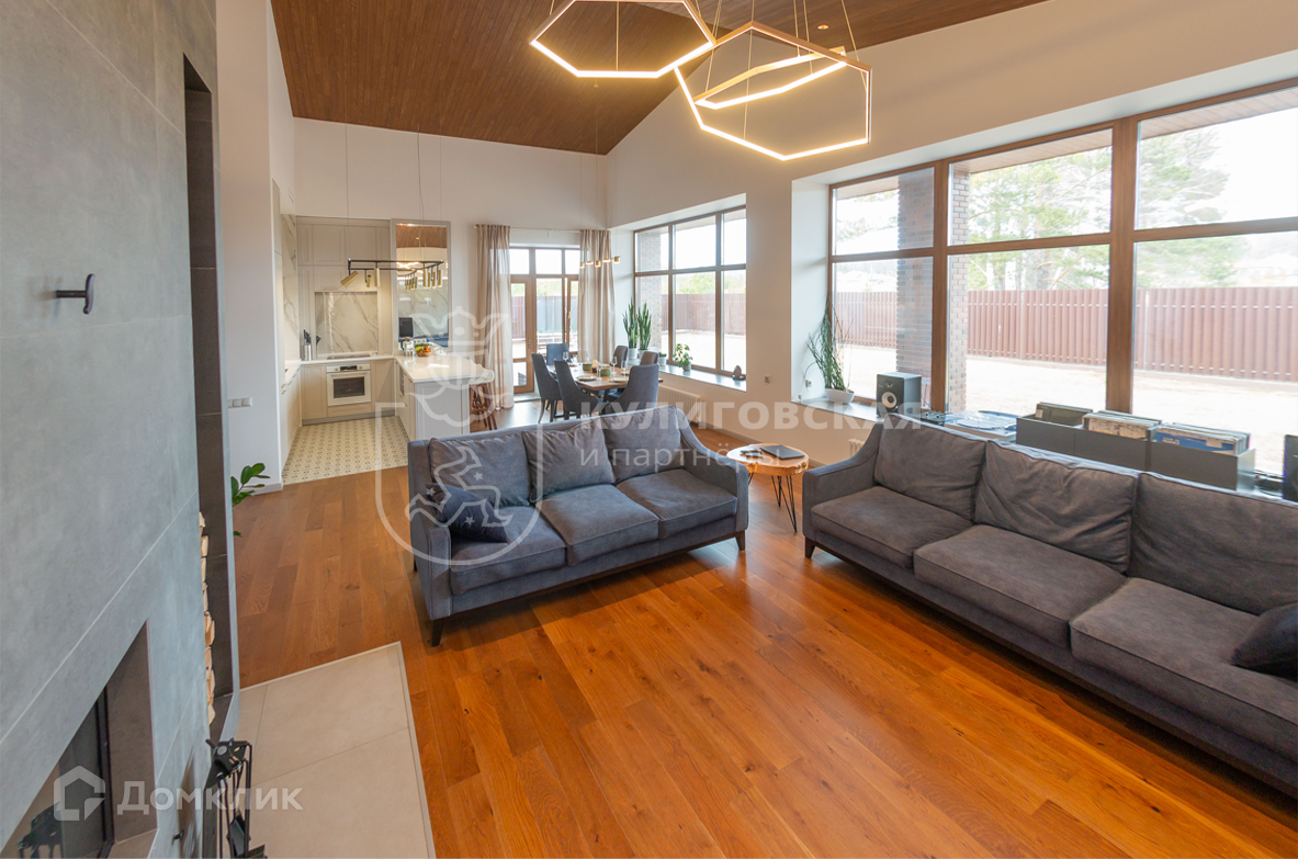 Современный и стильный одноэтажный коттедж построен из кирпича. Дизайнерский ремонт выполнен из качественных зарубежных материалов. В доме просторная кухня-гостиная площадью 50 кв. м с высокими потолками 4,5 метра, панорамным остеклением, выходом на террасу и настоящим дровяным камином, где будет так приятно собираться всей семьей или с друзьями. На летней террасе оборудована зона с печью-барбекю.
