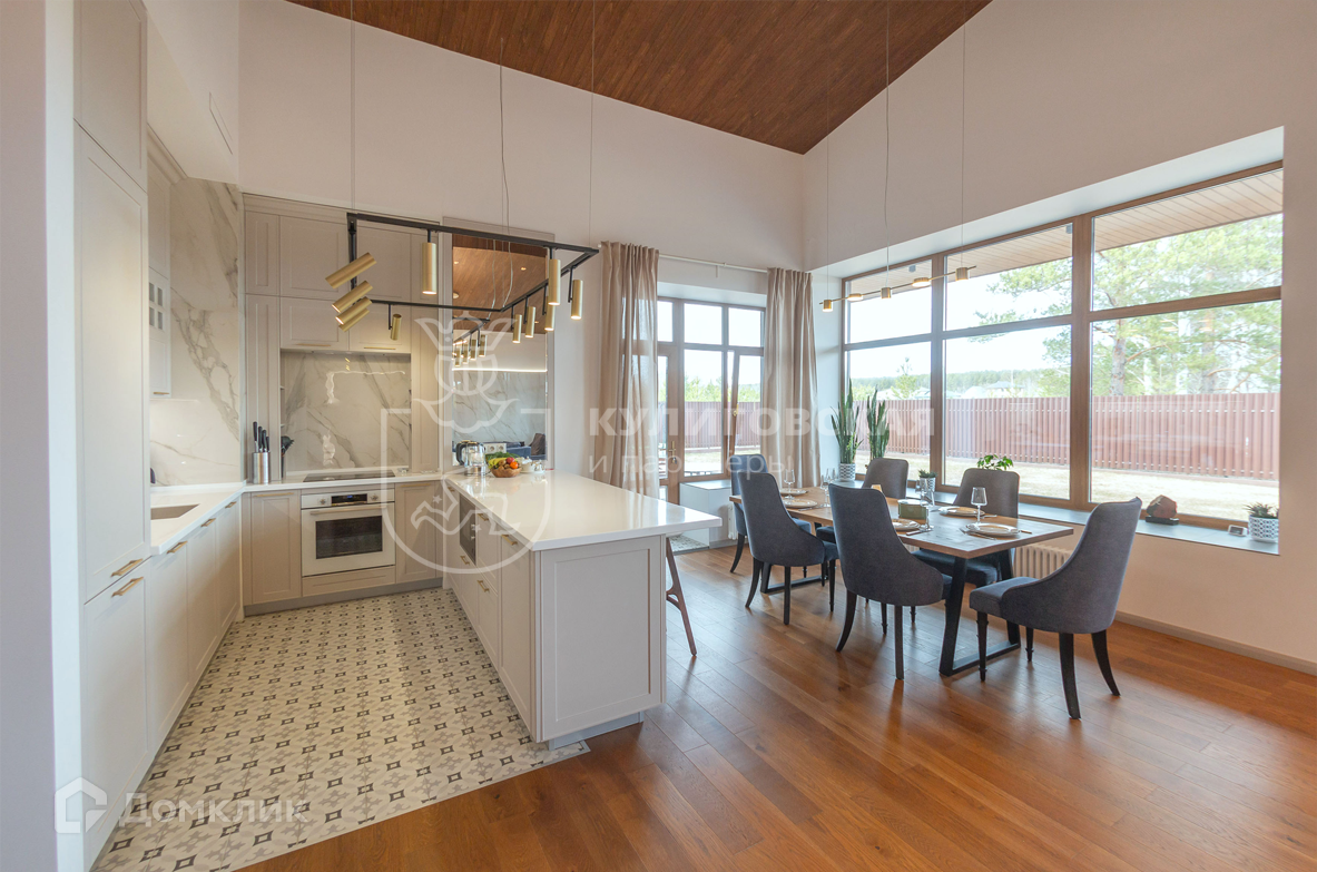 К продаже предлагается новый современный коттедж с дизайнерским ремонтом, полностью готовый для комфортного проживания, расположенный на участке 11,2 соток в живописном коттеджном поселке бизнес-класса «Родные просторы», в 22 км от Екатеринбурга по трассе М-5, рядом с селом Кашино.