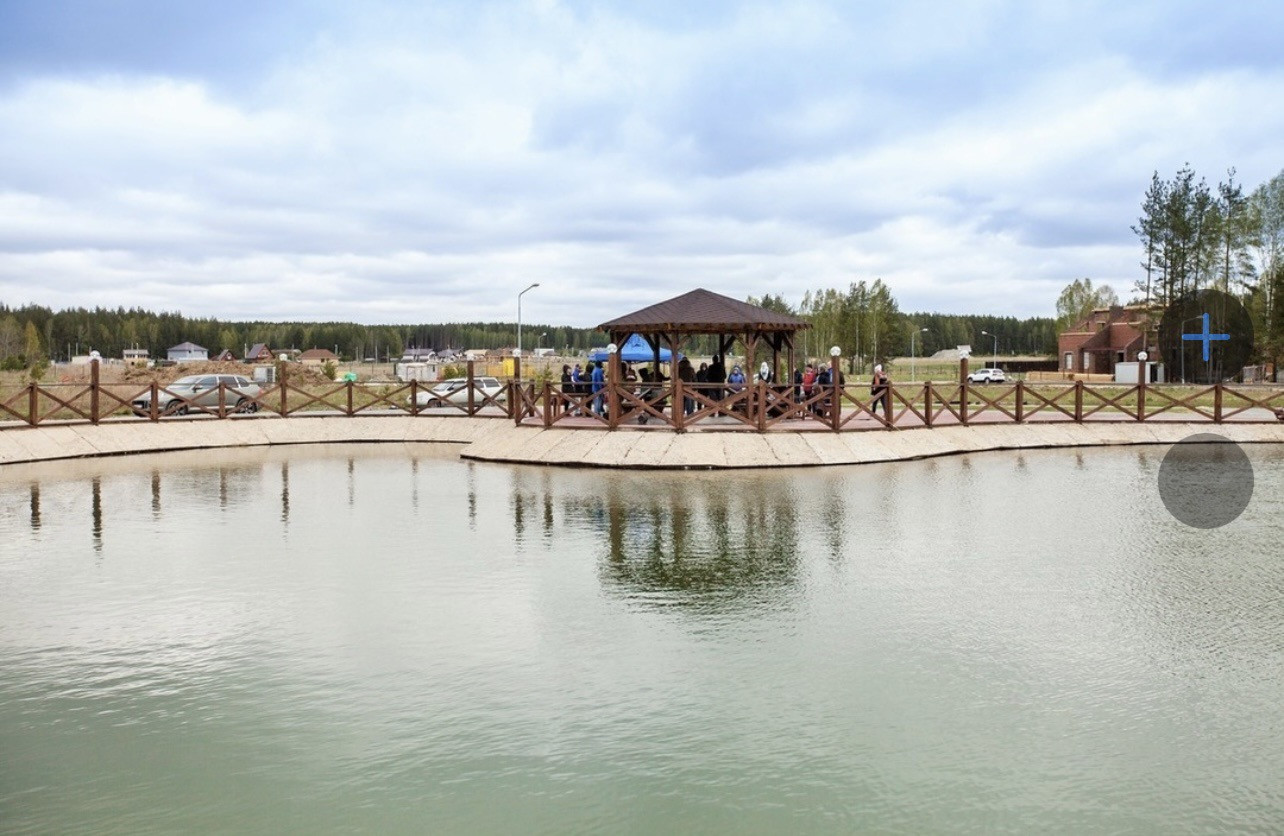 Участок расположен прямо в центре посёлка рядом с искусственным прудом. Участок ровный, без деревьев.
