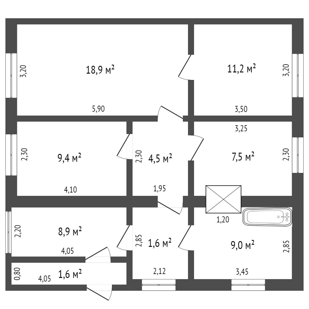 Общая площадь 75 м2