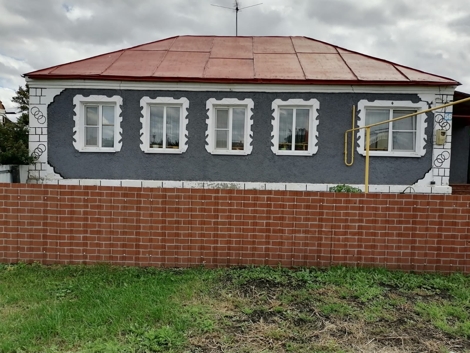 Кирпичный дом 1967 года, общей площадью 89,1 кв. м. В доме 5 комнат, кухня, ванная, туалет (санузел совмещённый) Есть все коммуникации: отопление газовое, центральное водоснабжение (так же имеется собственный колодец), электрический водонагреватель, погреб. Имеются надворные постройки... (так же летний душ, туалет), холодный гараж,  самодельная теплица. В саду есть беседка , посажены  (яблоня, вишня, смородина, крыжовник, клубника, малина, так же имеется разработанный участок для посадки+ участок 25 соток. Асфальтированная дорога. Река неподалёку. Прямо возле  дома находится детская площадка. В шаговой доступности находится школа, детский сад, больница, МФЦ, поликлиника, почта, сбербанк, магазины, парки.