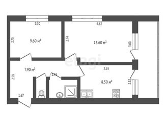 Общая площадь: 42.3 м2