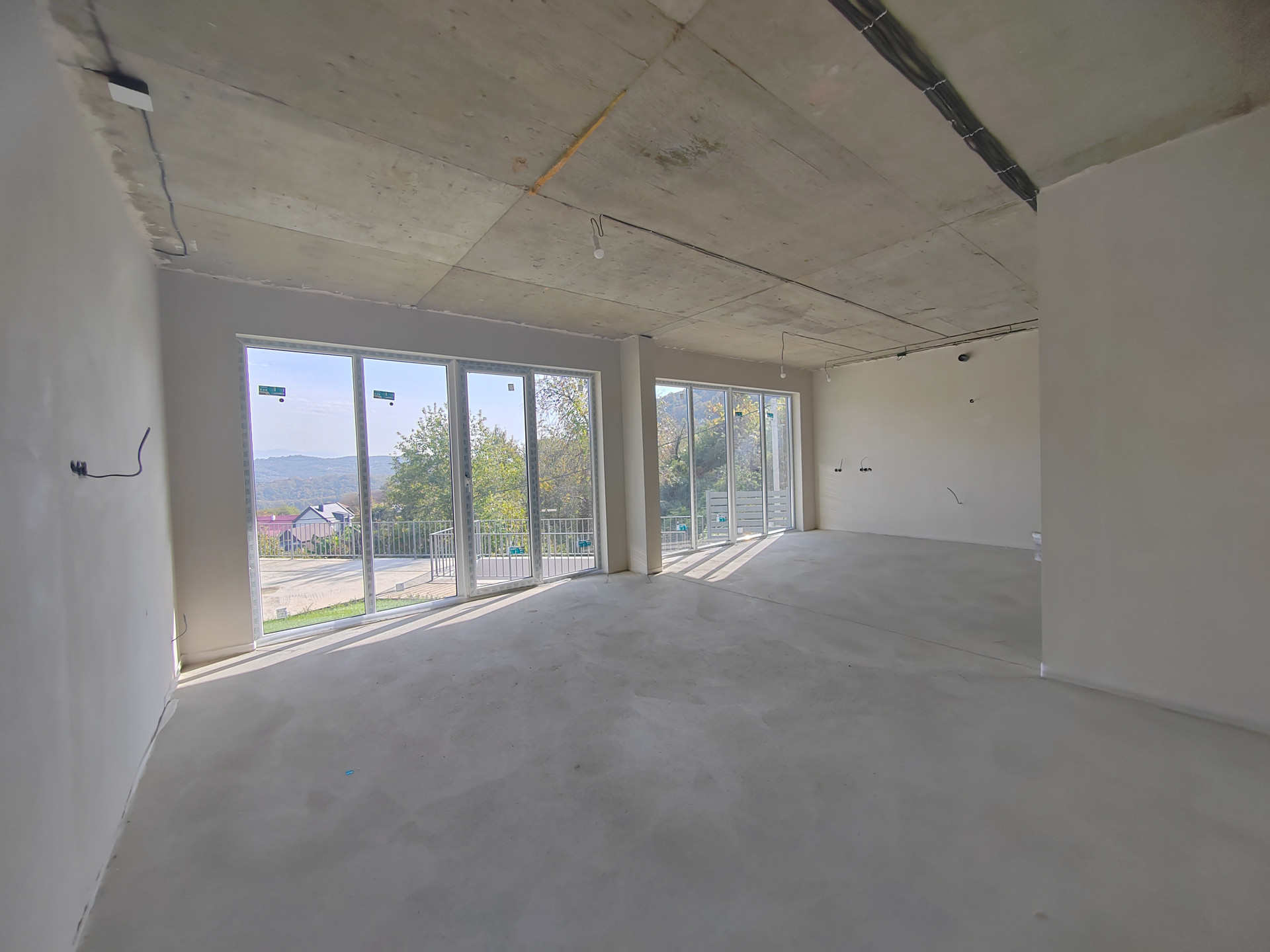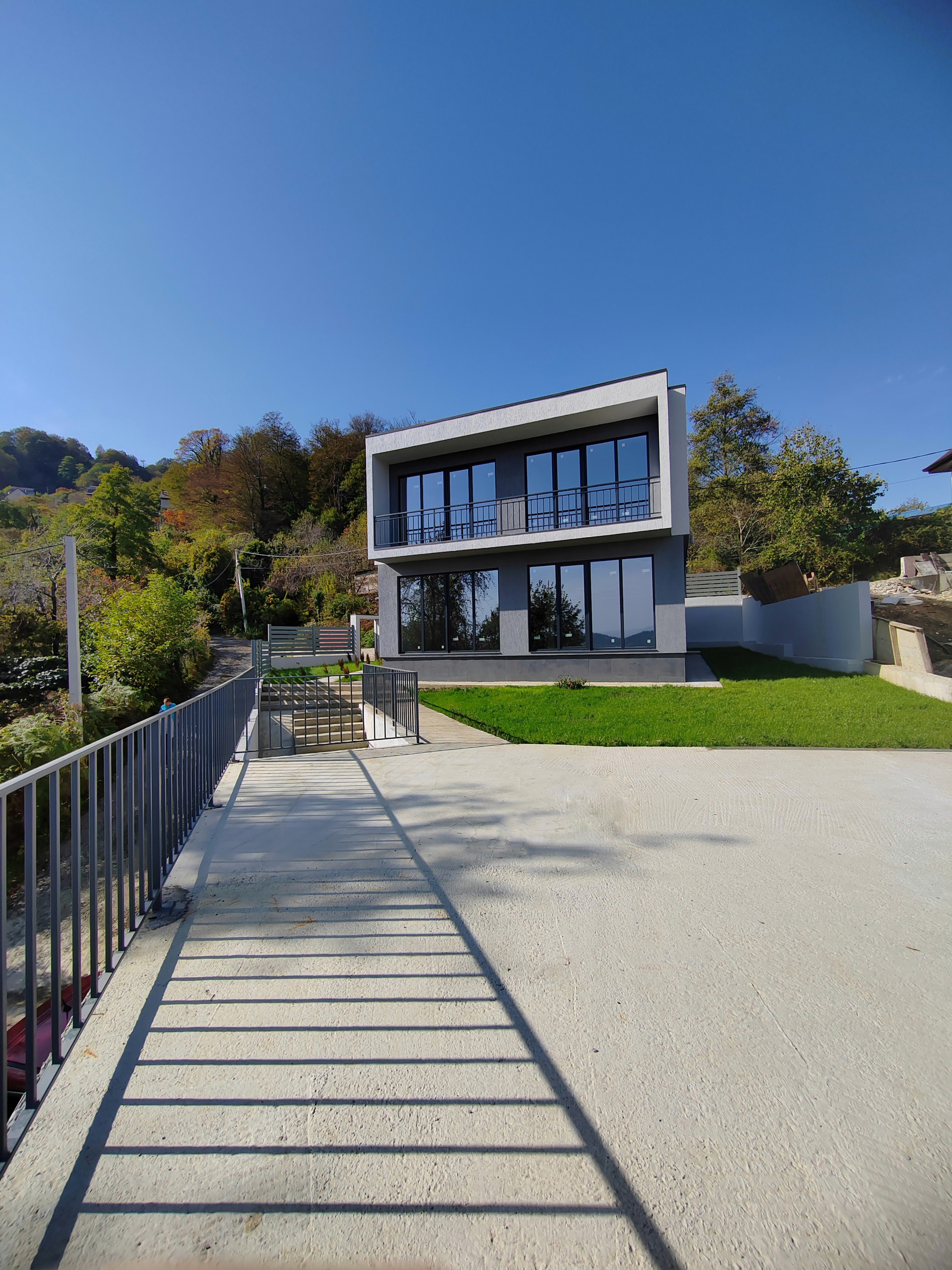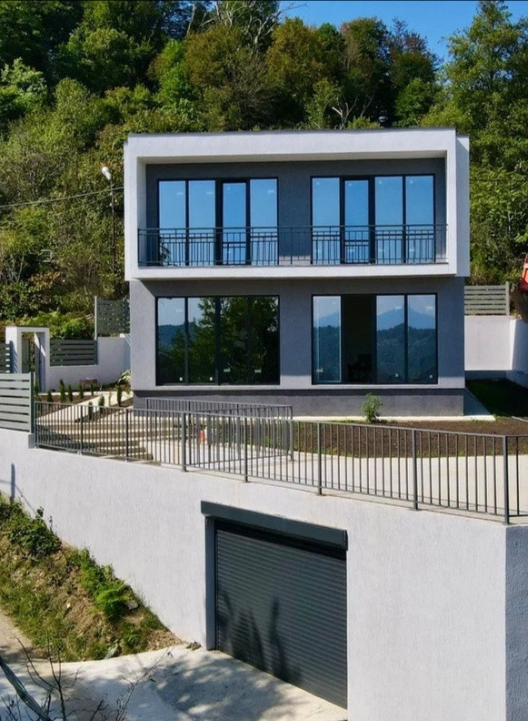 Двухэтажный дом 170 кв.м. монолит + газоблок, фундамент залит на свайном поле (уровень сейсмостойкости высокий). Первый этаж: прихожая, просторная кухня-гостиная (окна в пол вид на горы), санузел, техническое помещение. Второй этаж: три спальни (две - окна в пол с балконом и видом на горы), санузел. В доме выполнена предчистовая отделка, все коммуникации заведены (канализация, электрика, теплые полы), электричество 15квт, вода скважина, септик установлен, газ по границе.