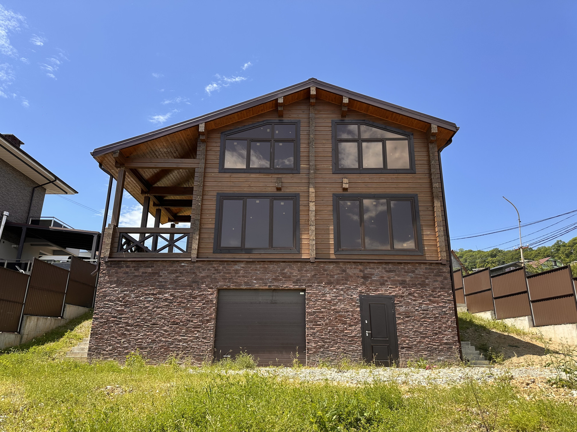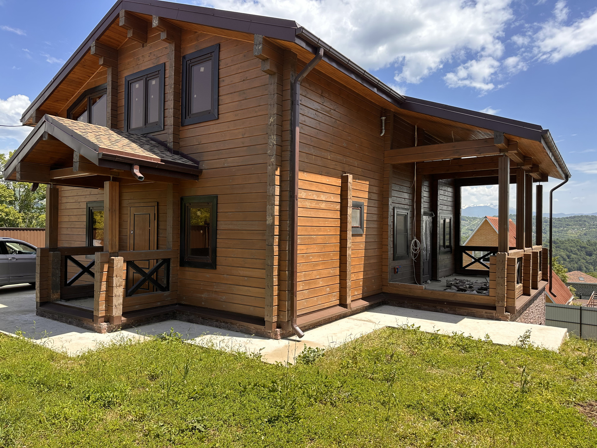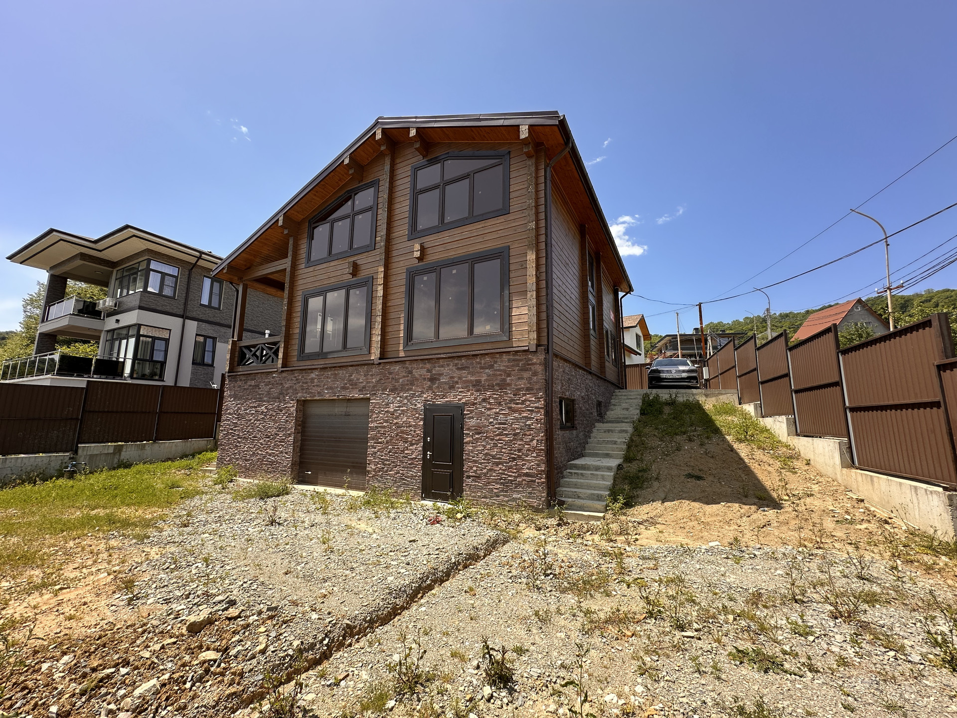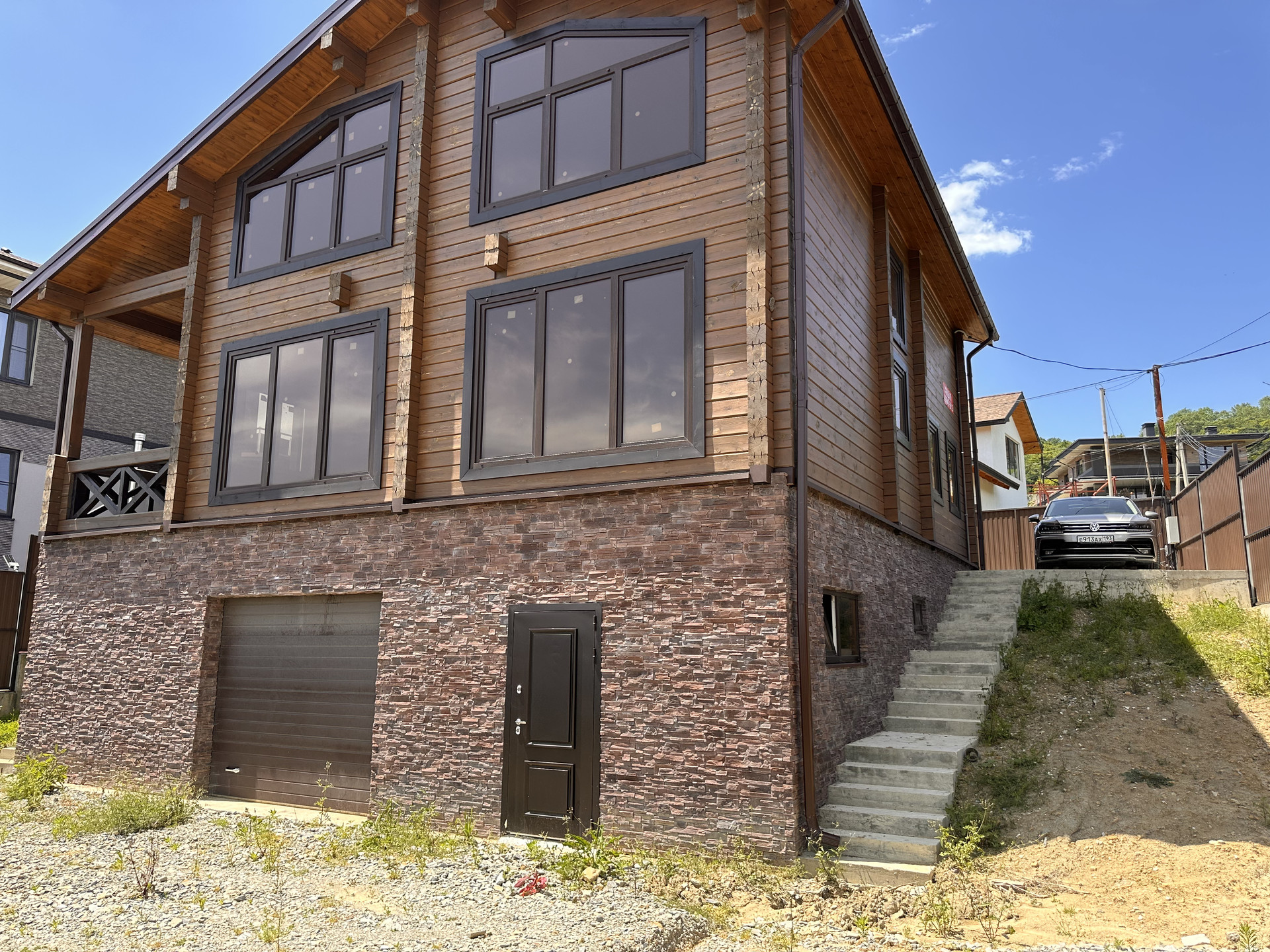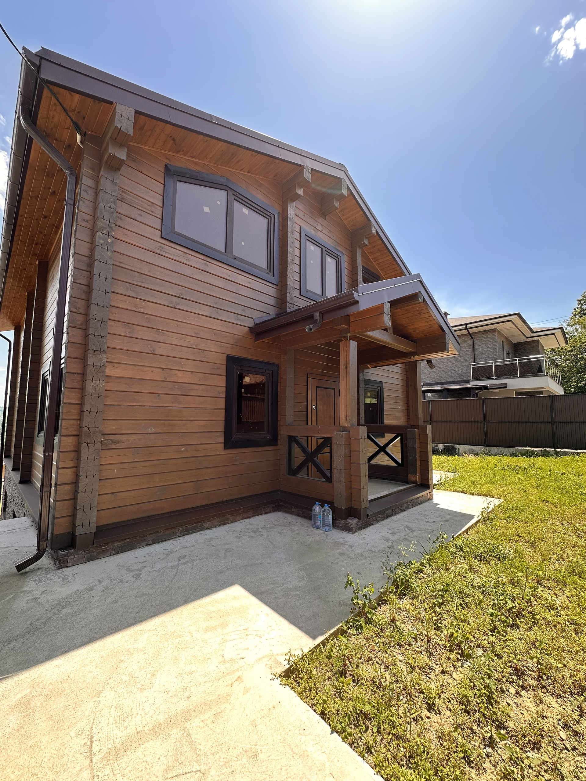 Дом 3 этажа. Первый монолитный, с автоматическими воротами и дверью. Сухой с высоким потолком. Два этажа брус, не поведенный, без трещин. Дом покрашен и обработан. Стажка, скрытая электрика разведение вся, отопление разведено. Есть бойлер и электрический котел, в июле на улицу заводят газ, можно будет отапливаться газом. Три спальни на верху и сан узел, кухня гостиная, сан узел, прачечная и гардероб на первом. Вода скважина 60 метров( вода хорошая, воды достаточно). Свет 15 кВт, ЛОС установлен. Два заезда на участок, очень удобно. Идеальный подъезд, от основной асфальтированной дороги 200 метров по идеальной широкой бетонке, все соседи вокруг новые красивые дома. Отличный вид в подарок. На все вопросы отвечу. Видео и фото вышлю дополнительно. Лучше звоните. Да, это реальное объявление и реальный дом.