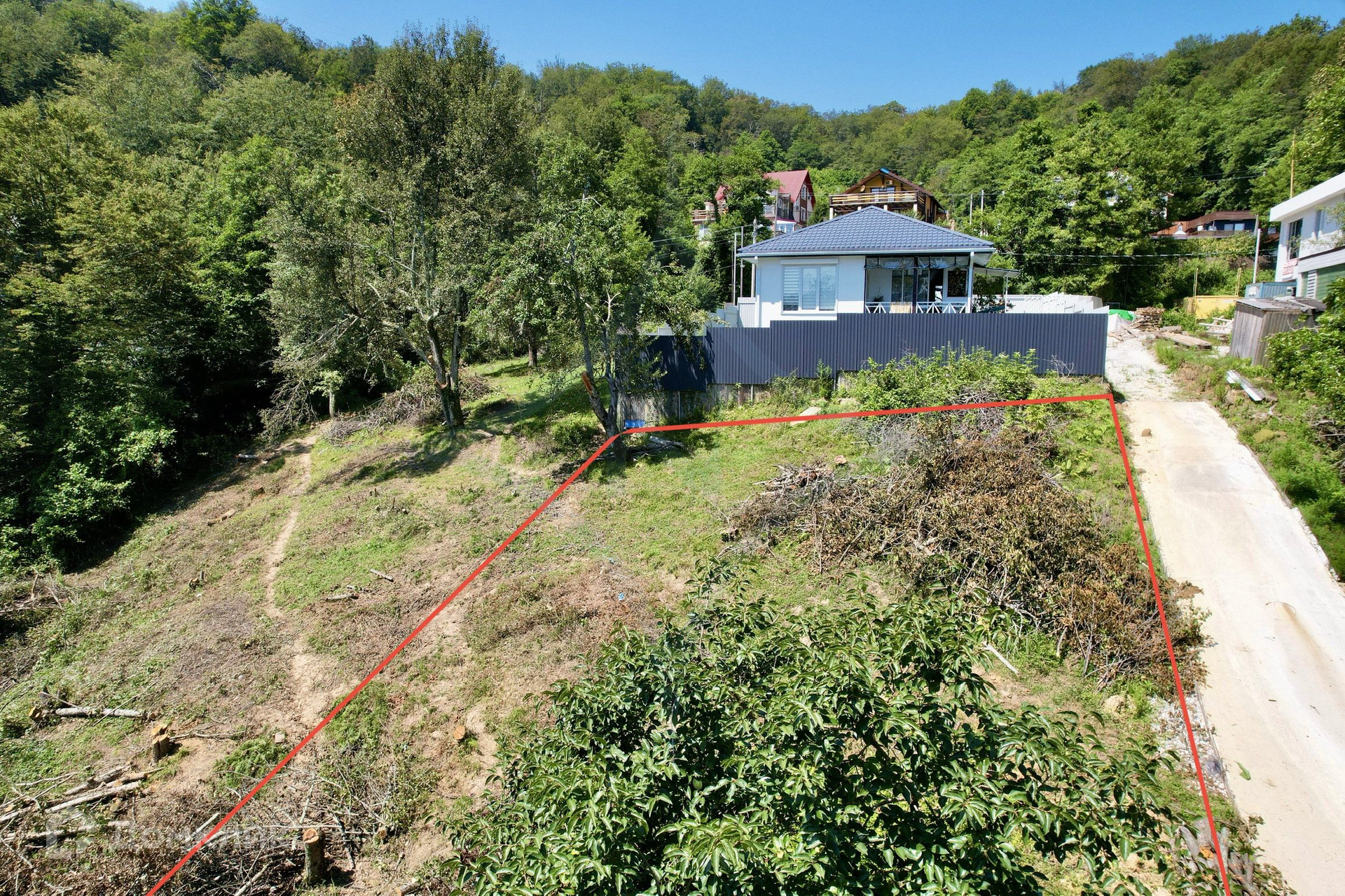 Участок с Разрешением на строительство на дом 100 м2.   Отличная асфальтная дорога до участка.    Коммуникации:   Вода - скважина пробурена уже на участке.  Электричество 15 квт по границе.  Газ - подстанция в 50 метрах.    Участок квадратной формы.