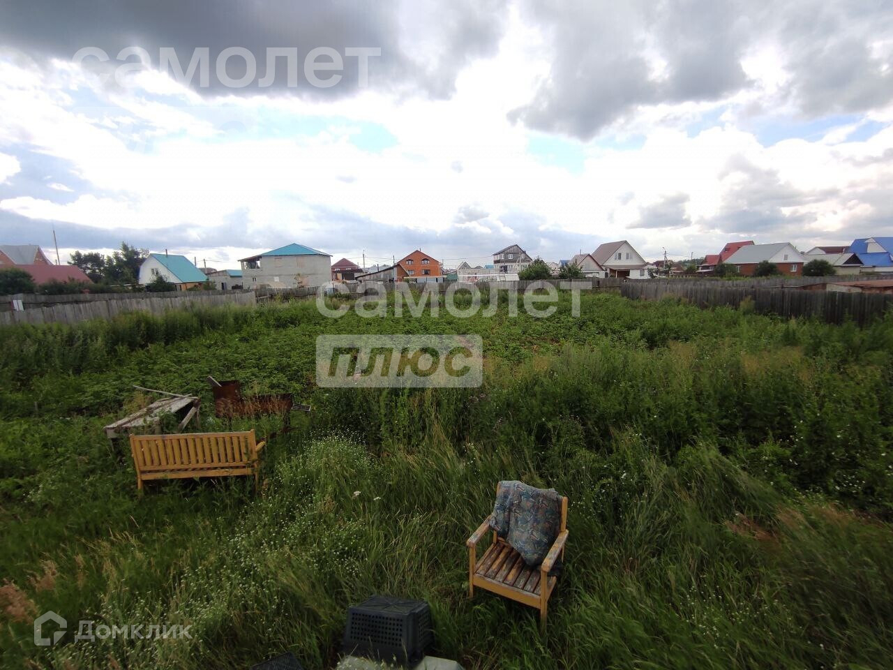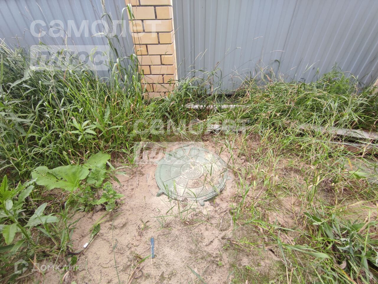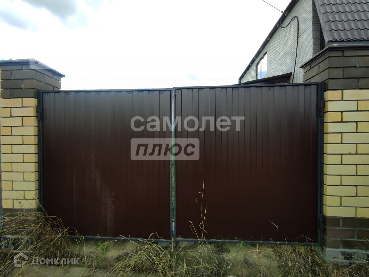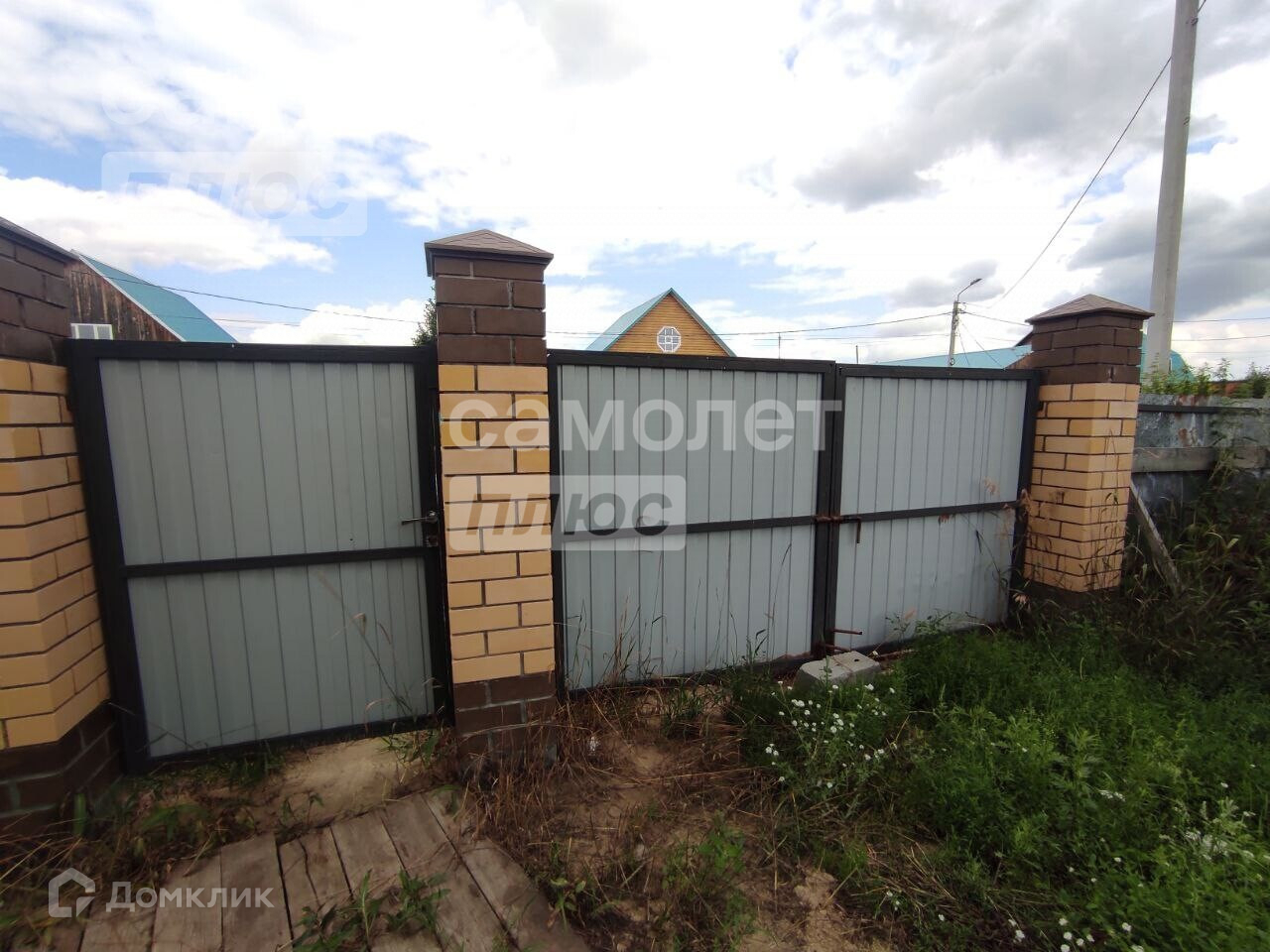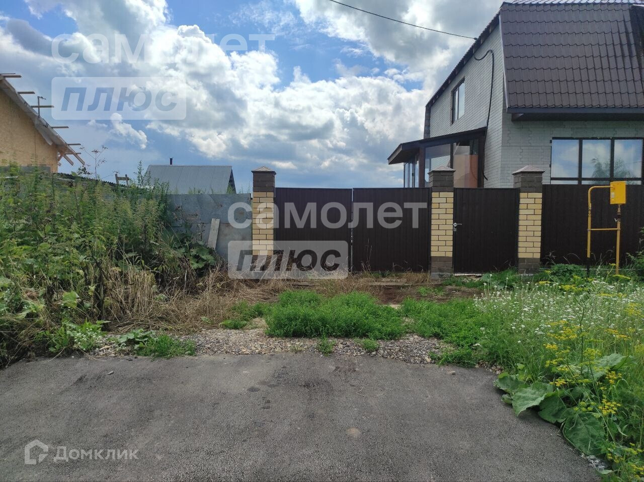 Участок 15 соток, высокий, огороженный с калиткой и воротами (столбы кирпичные, забор - металлические листы).