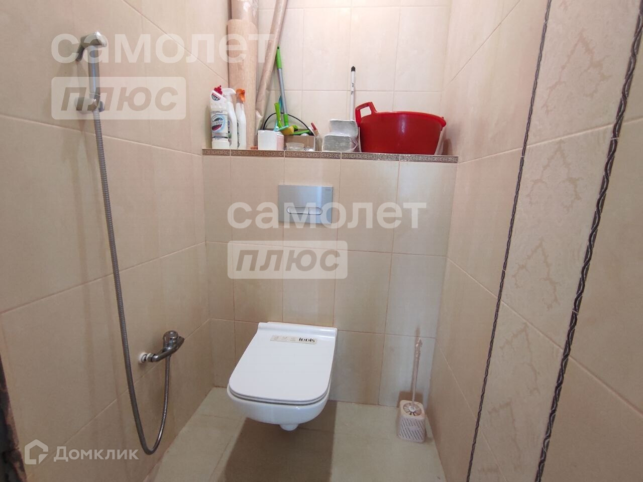 В туалете установлена скрытая инсталляция. Обе комнаты (туалетная и душевая) выложены плиткой.