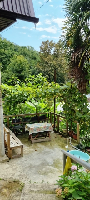 На участке  огромное количество красивых цветов и плодовых деревьев, а также имеется теплица, курятник.  Вокруг хорошие и тихие соседи, до автобусной остановки 10 минут пешком, в посёлке есть магазины и аптека, школа. Не далеко от дома протекает прохладная горная река с местами для купания и красивыми пикниковыми полянками. Море в пешей доступности, красивый пляж с широкой пляжной полосой, спокойным шагом около 30 минут, на машине 7 минут! До пос. Лазаревское 20 минут езды!
