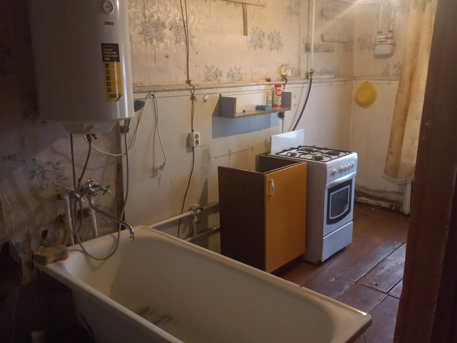 Площадь дома включает в себя комнату 26,3 кв.м, большую кухню-гостиную 24,5 кв.м и три веранды с двух сторон дома 10кв.м+13,2кв.м+8,5кв.м. В доме установили ванну и есть возможность установить унитаз. Водоснабжение центральное.Канализация своя. Площадь позволяет выделить полноценный совмещенный санузел.