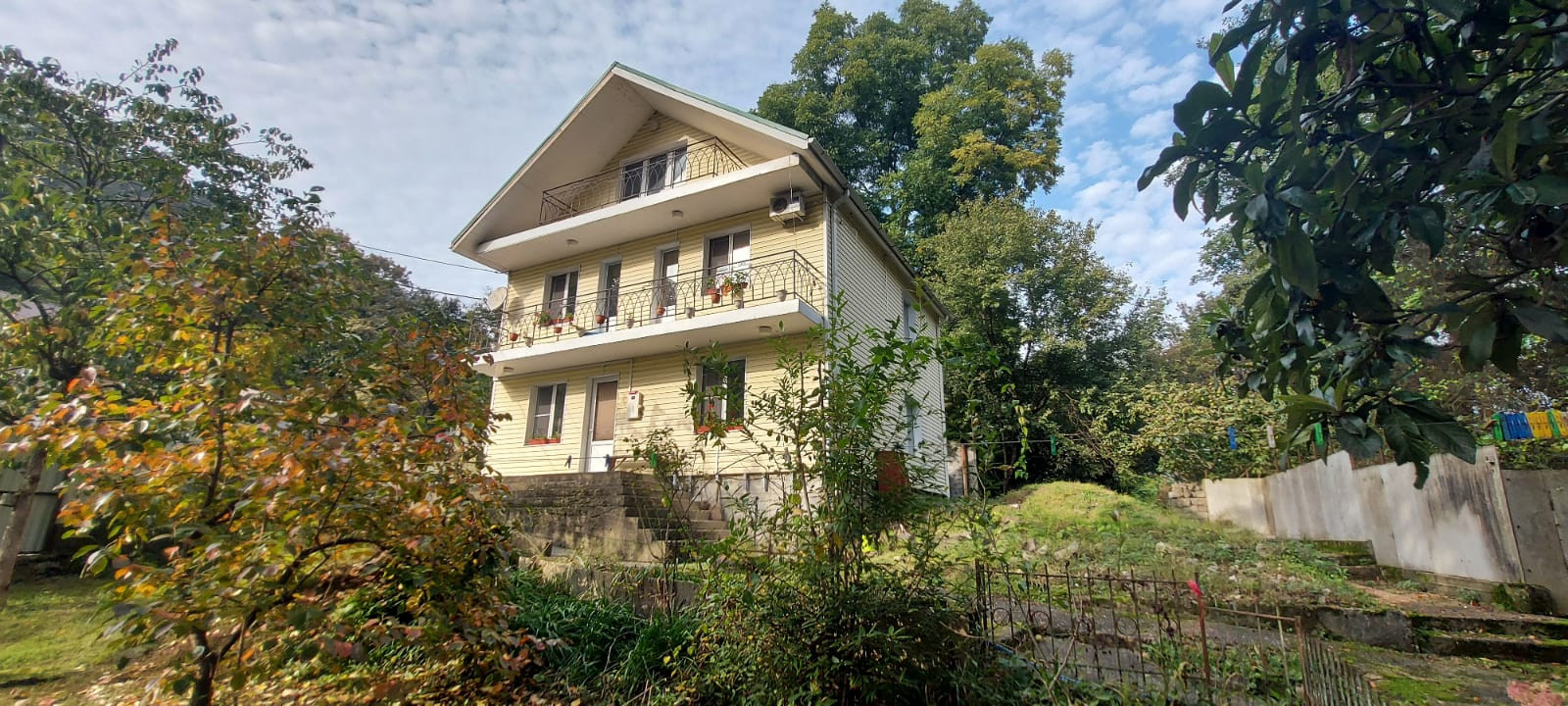 Продаю 3-х этажный жилой дом. На первом этаже имеется холл,большая кухня,гостиная,санузел. На втором этаже  три спальни. На территории растёт фруктовый сад:инжир,хурма,орехи.