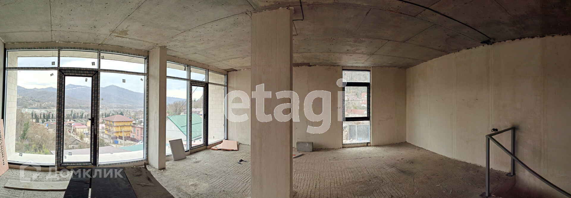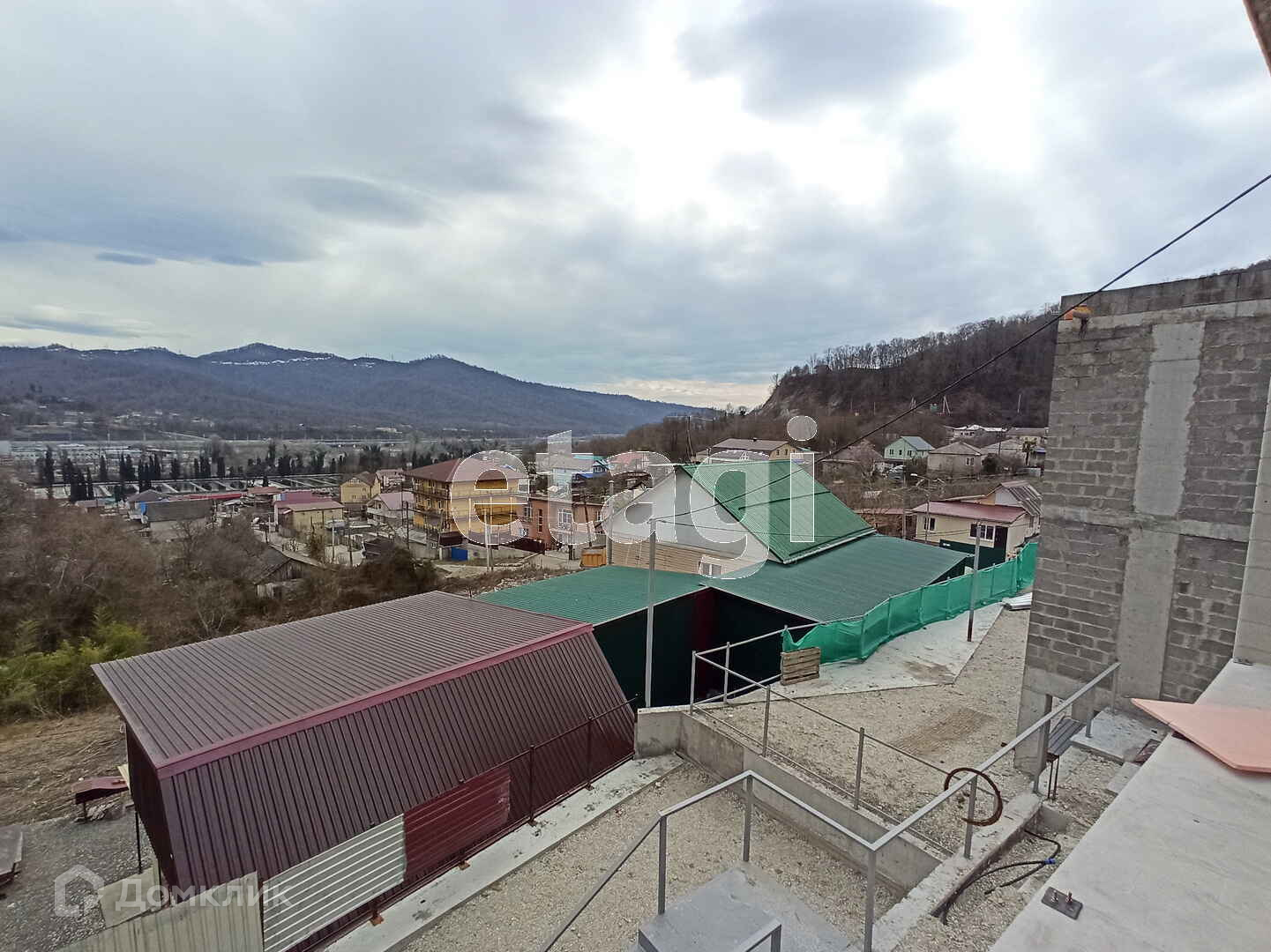 Из дома, с панорамными окнами открывается великолепный вид на долину реки Мзымта, форелевое хозяйство и реликтовые деревья примыкающие к границе усадьбы.
