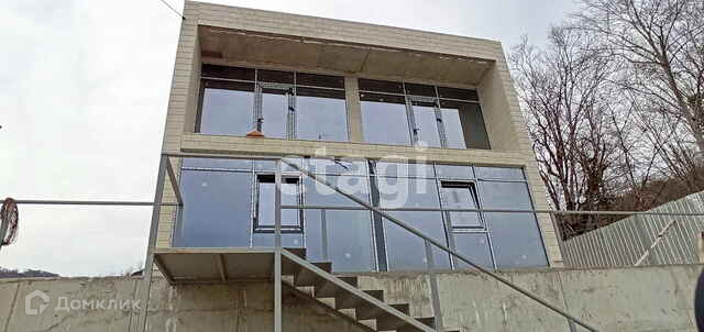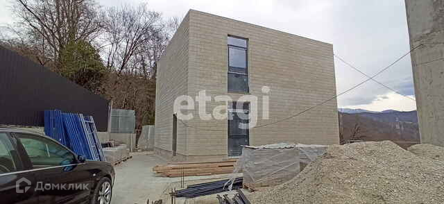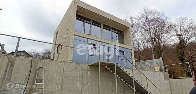Коттедж в современном черноморском стиле хай-тек расположен по дороге на Красную поляну между морскими и горными курортами, Скайпарком, смотровыми площадками и памятниками природы.