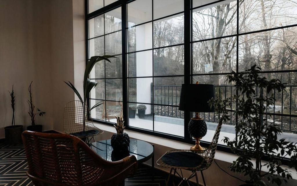 Все окна из алюминиевого профиля.