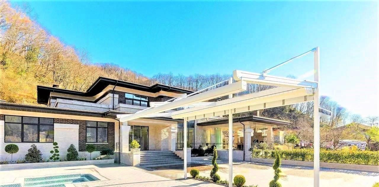 На территории отдельно предусмотрен гостевой дом, баня, бассейн.