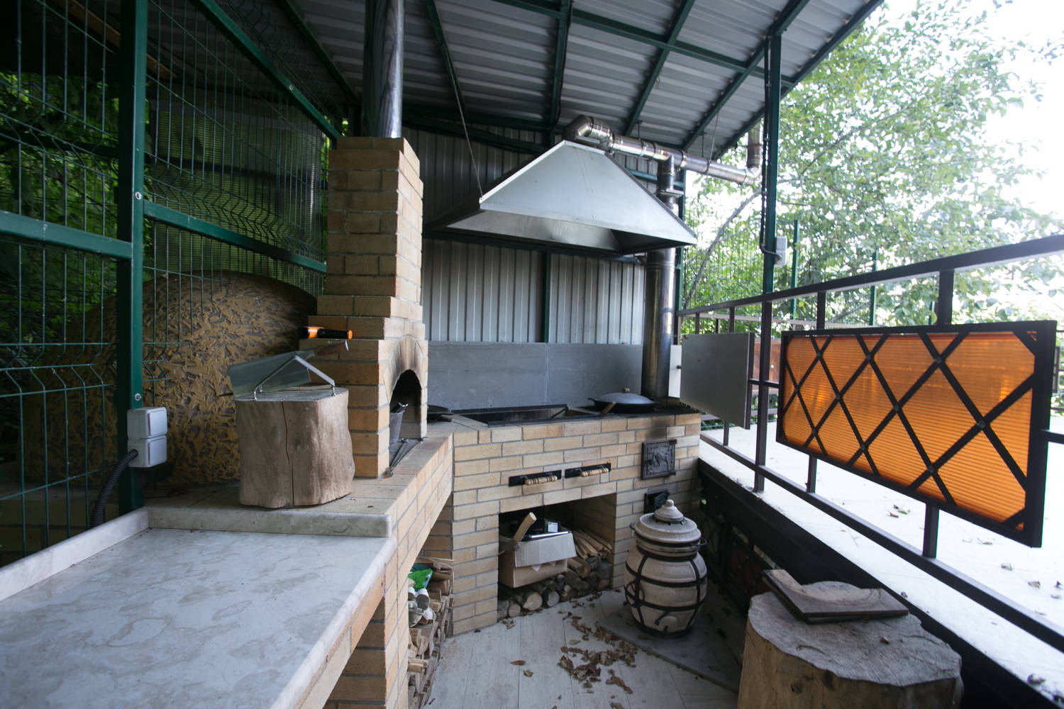 Со второго этажа выход на открытую террасу и зону барбекю с Помпейской печью.